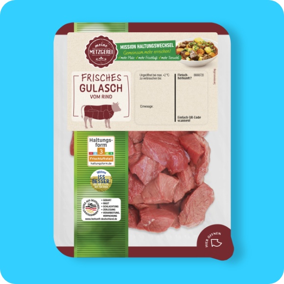 Vom Rind, Haltungsform 3², Herkunft aus Deutschland, je 500-g-Packung