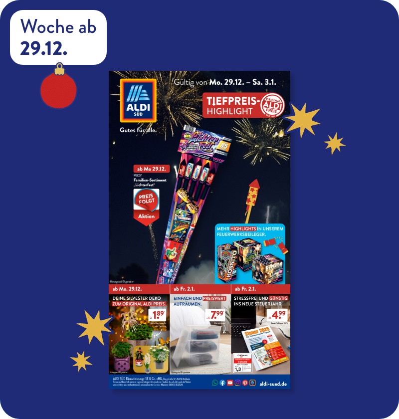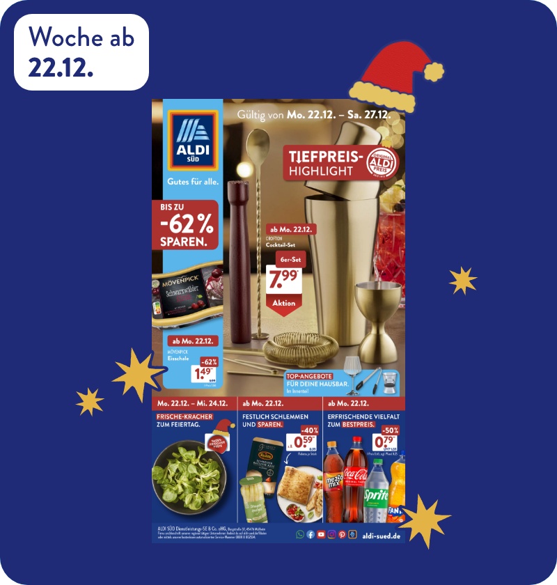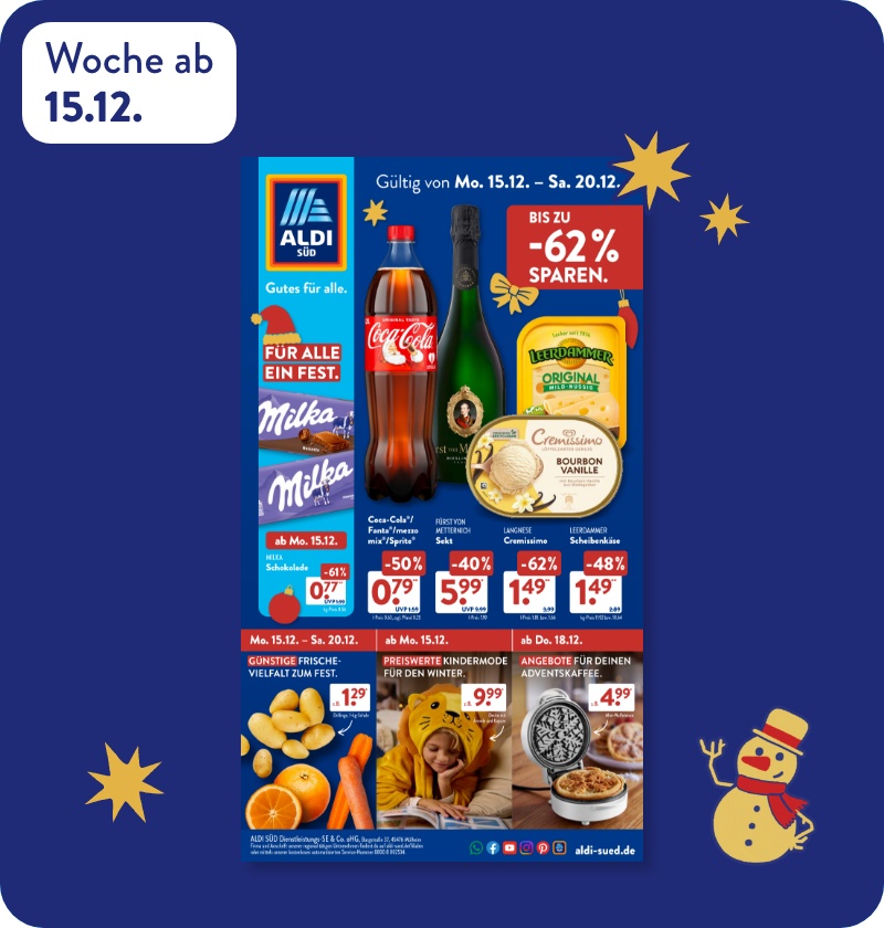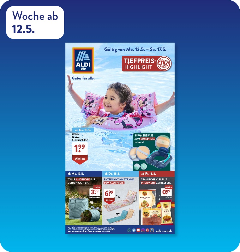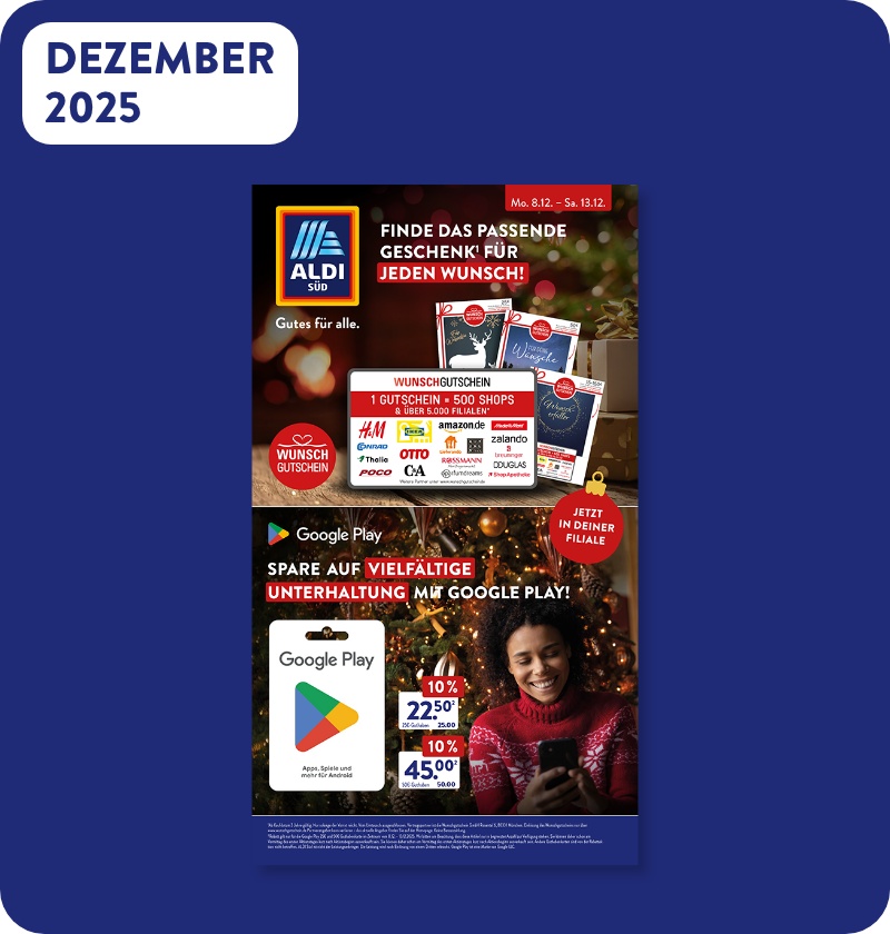Bleib informiert und melde dich für unsere ALDI SÜD Kanäle an. Dort findest du die aktuellen Prospekte, Angebote, Gewinnspiele, Rezepte und vieles mehr.
