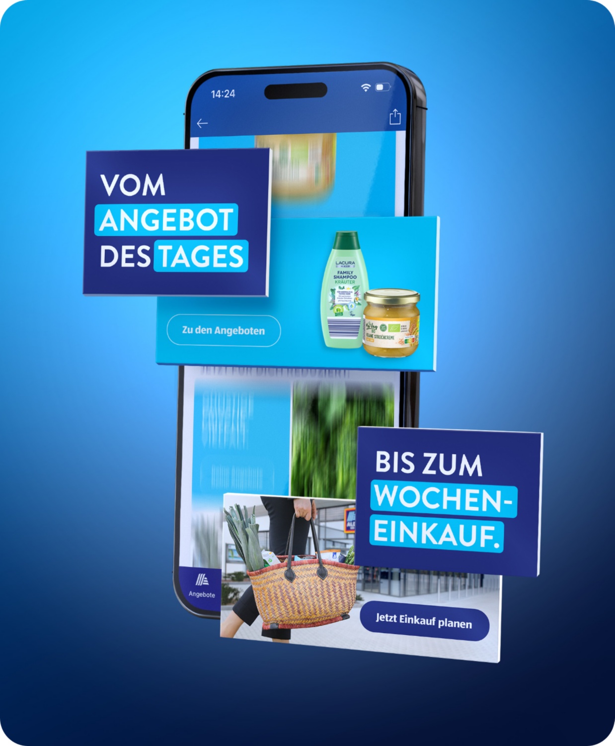 Entdecke jede Woche die besten Rabatte und Aktionen – von frischem Obst und Gemüse bis zu Bettwäsche und vielen weiteren Angebotshighlights. Prüfe in der App auch ganz einfach die Verfügbarkeit eines Angebotsartikels deiner Wahl in der nächsten ALDI Filiale.