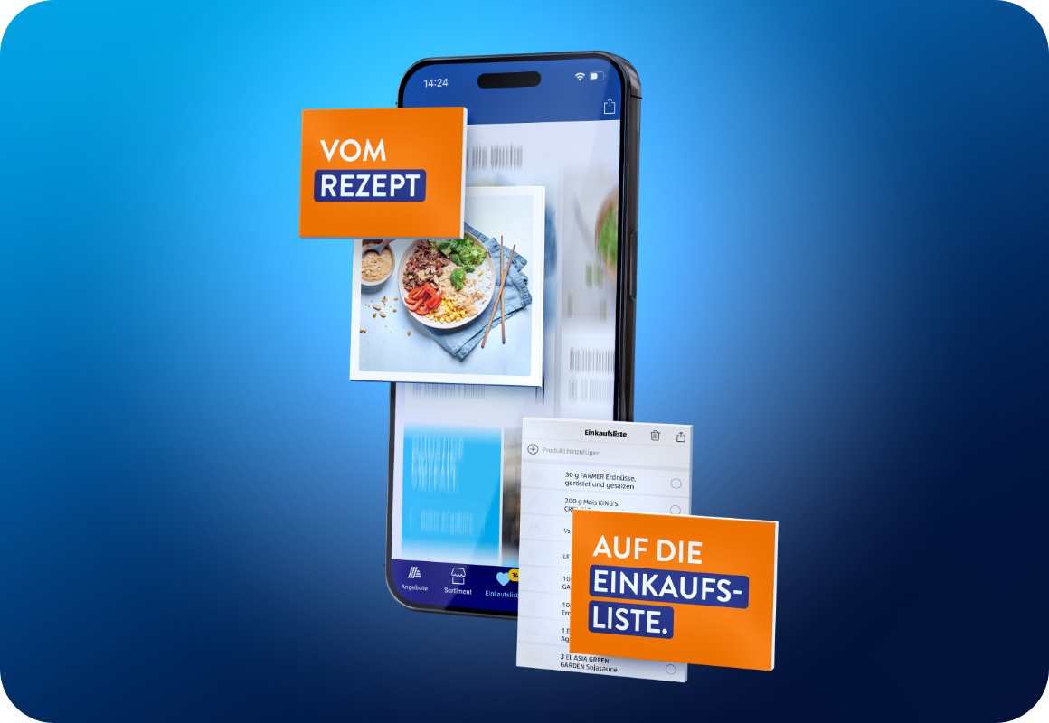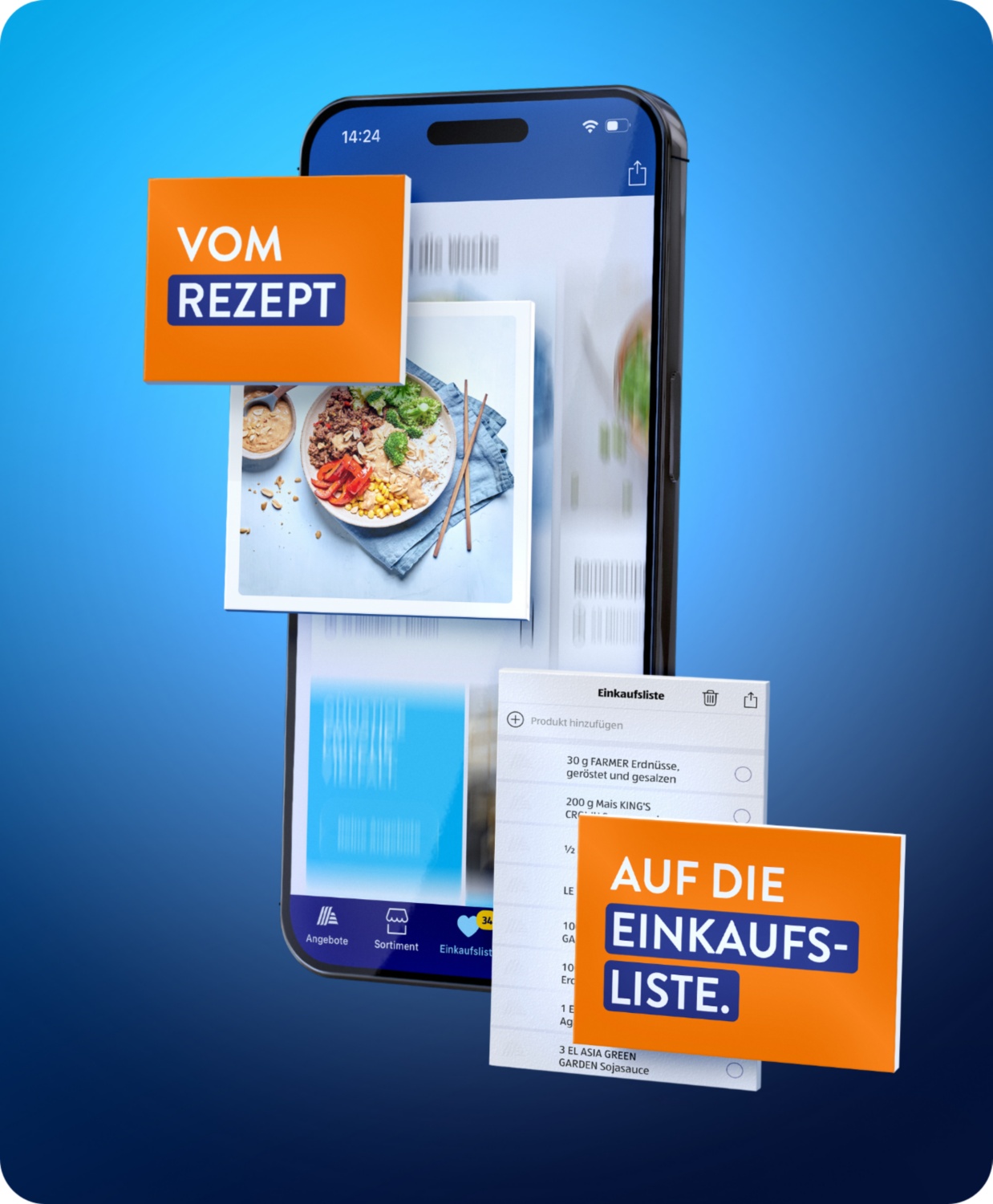 Entdecke viele verschiedene Rezepte nach deinem Geschmack und bereite deinen Einkauf ganz einfach vor, indem du die passenden Zutaten direkt auf deine Einkaufsliste legst.