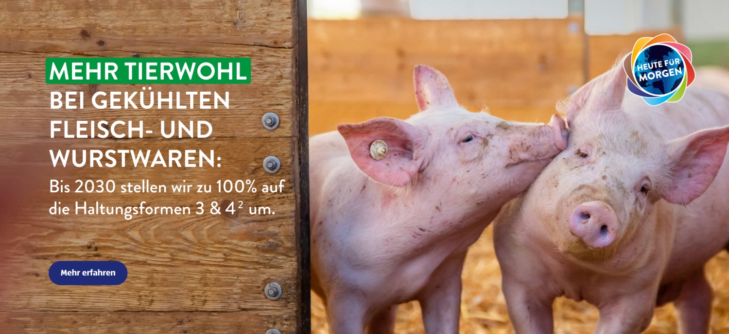 ² Bezogen auf den Umsatz (ALDI SÜD) in Deutschland mit unseren Eigenmarken aus den Bereichen gekühlte Fleisch-, Wurst- und Schinkenwaren sowie Frikadellen der größten Nutztiergruppen Rind, Schwein, Hähnchen und Pute. Ausgenommen sind internationale Spezialitäten sowie Convenience und Fertiggerichte.