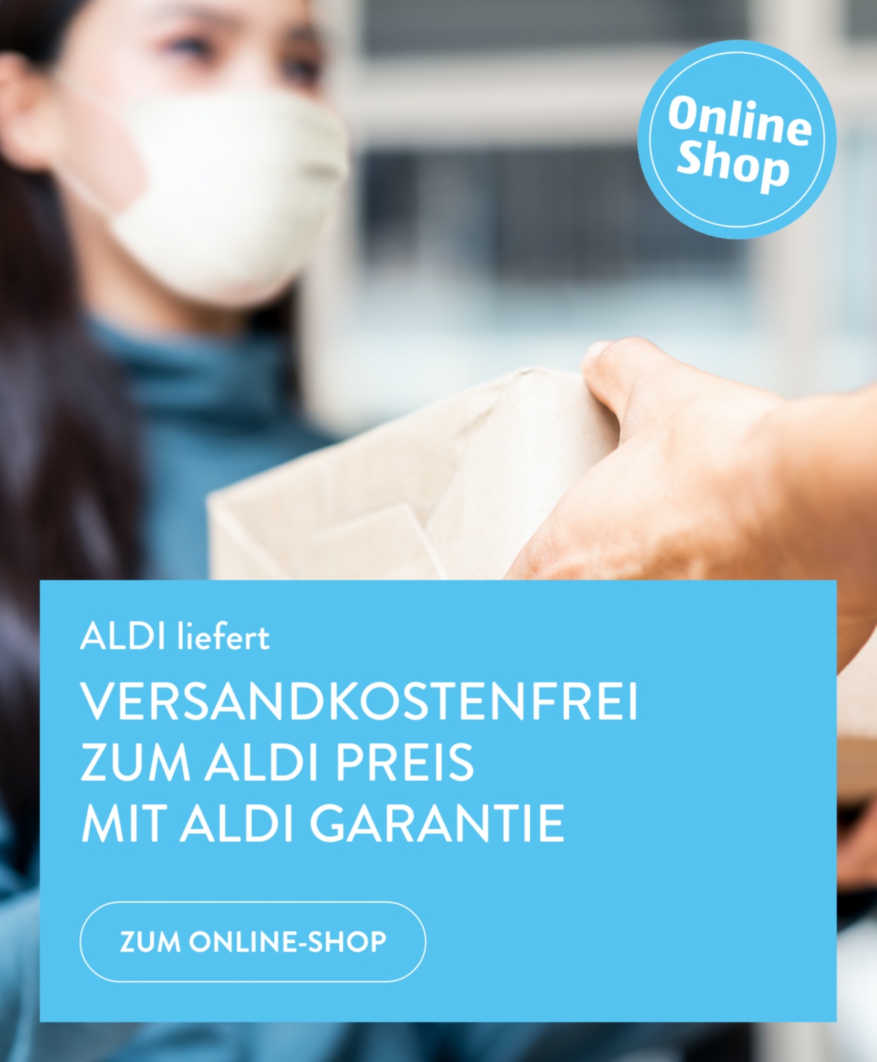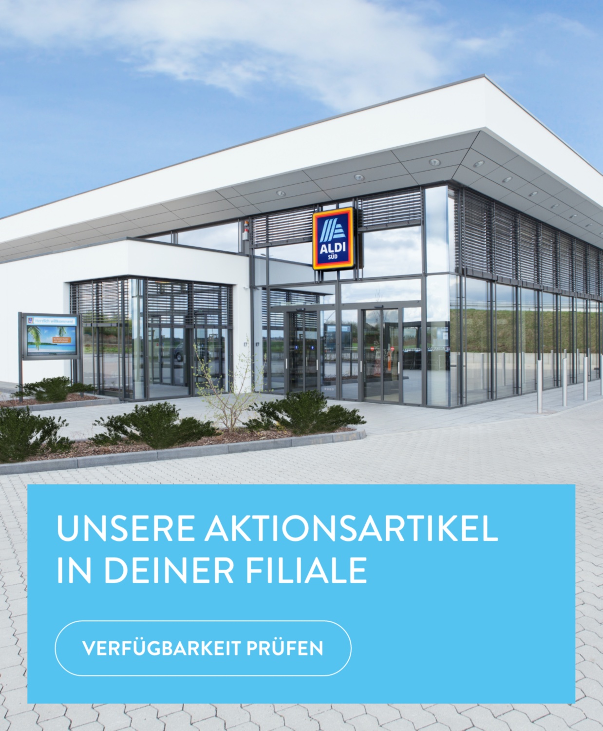 ¹ Artikel nicht in der Filiale vorrätig bzw. lagernd. Wir planen unsere Angebote „ALDI liefert“ stets gewissenhaft und auf Basis aller verfügbaren Erfahrungen. In Ausnahmefällen kann es jedoch vorkommen, dass die Nachfrage nach einem Artikel unsere Einschätzung noch übertrifft und er mehr nachgefragt wird, als wir erwartet haben. Wir bedauern es, falls ein Artikel schnell – womöglich unmittelbar nach Aktionsbeginn – nicht mehr verfügbar sein sollte.