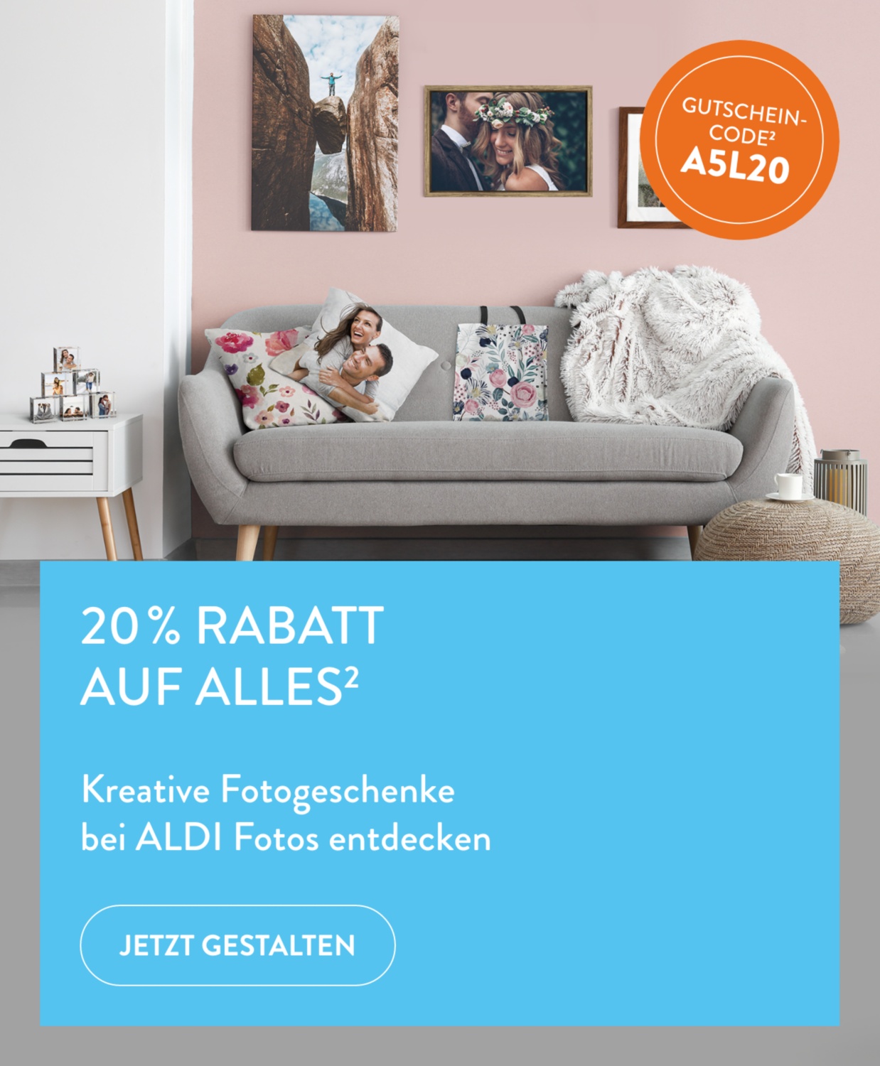 ² Der Gutscheincode ist gültig auf das gesamte Sortiment ausgenommen Echtfotobücher, Echtfotokalender, Fotoabzüge, Poster, Alu-Dibond und Mundschutz. Das Angebot ist für den Zeitraum vom 21.02.2021 bis 07.03.2021 gültig. Alle Preise inkl. MwSt., zzgl. max. 4,99€ Versandkosten. Änderungen und Irrtümer vorbehalten. Gutscheincode bitte an der entsprechenden Stelle im Warenkorb eingeben. Einmal pro Nutzer einlösbar, nicht mit anderen Aktionen kombinierbar und nur solange der Vorrat reicht. Kein Rabatt auf Versandkosten. Vertragspartner ist die Picanova GmbH, Hohenzollernring 25, 50672 Köln.