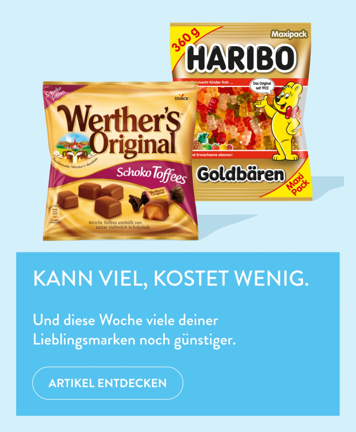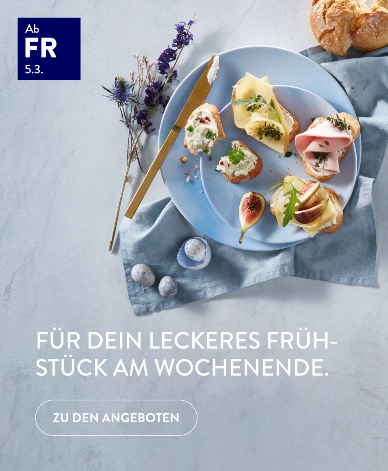 * Bitte beachte, dass diese Aktionsartikel im Gegensatz zu unserem ständig verfügbaren Sortiment nur in begrenzter Anzahl zur Verfügung stehen. Sie können daher schon am Vormittag des ersten Aktionstages kurz nach Aktionsbeginn ausverkauft sein. Alle Artikel ohne Dekoration.