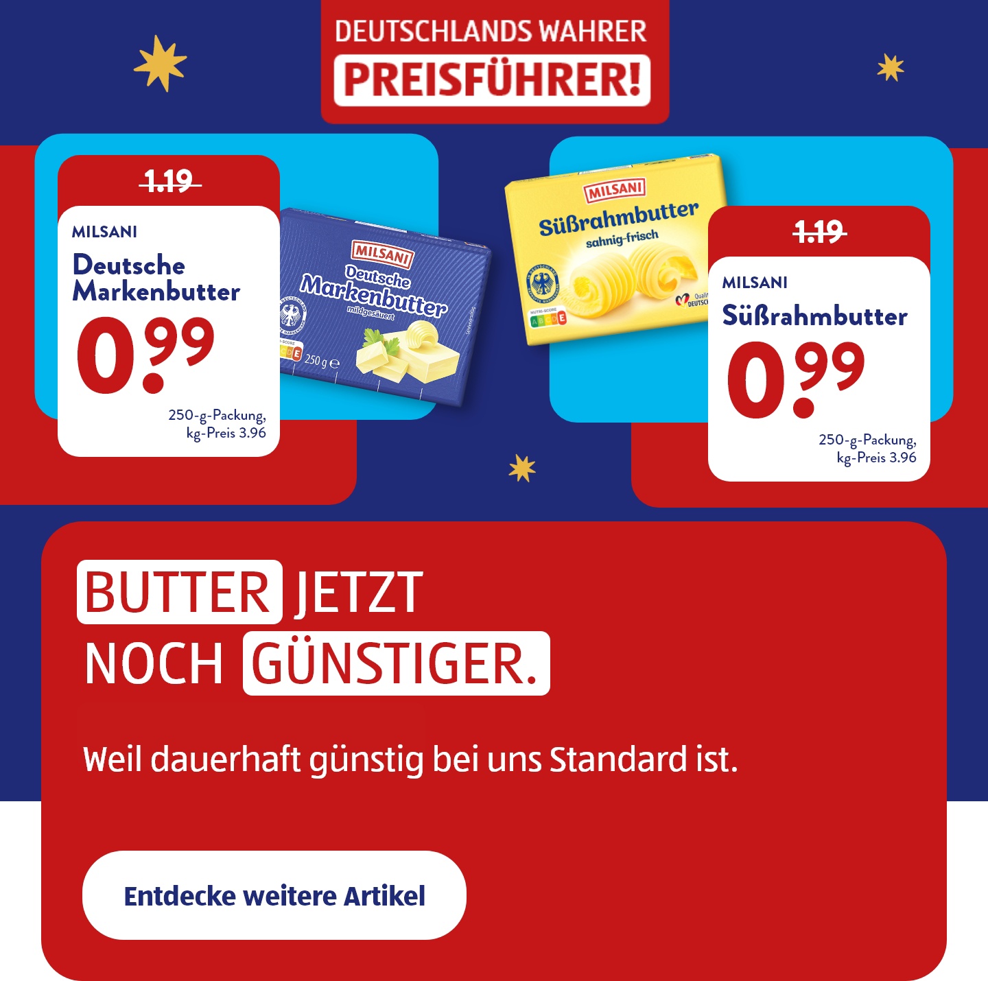* Bitte beachte, dass diese Aktionsartikel im Gegensatz zu unserem ständig verfügbaren Sortiment nur in begrenzter Anzahl zur Verfügung stehen. Sie können daher schon am Vormittag des ersten Aktionstages kurz nach Aktionsbeginn ausverkauft sein. Alle Artikel ohne Dekoration.