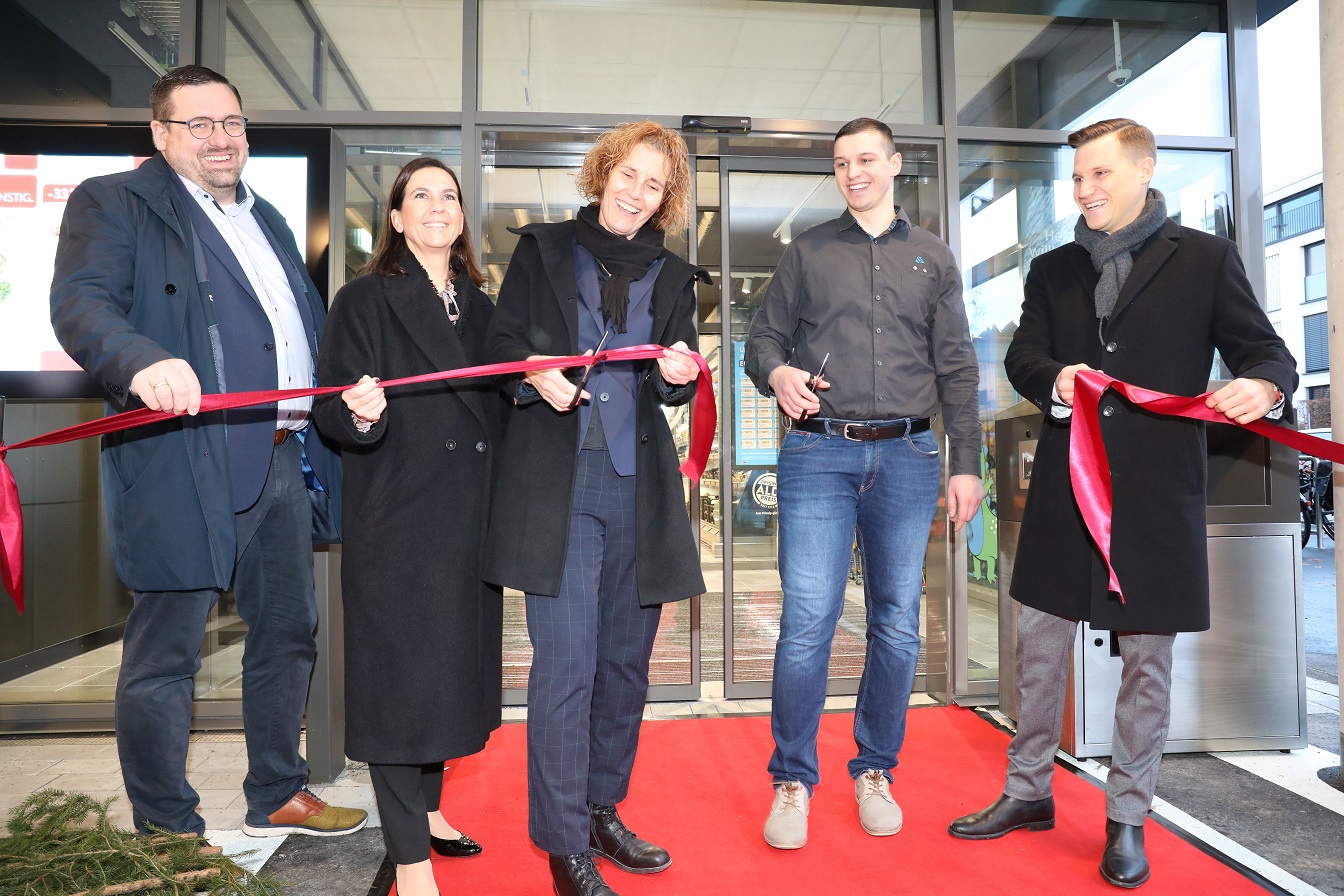 Dr. Corinna Clemens, Baubürgermeisterin der Stadt Sindelfingen, (Mitte) feiert mit ALDI SÜD die Eröffnung der neuen Filiale in Maichingen.