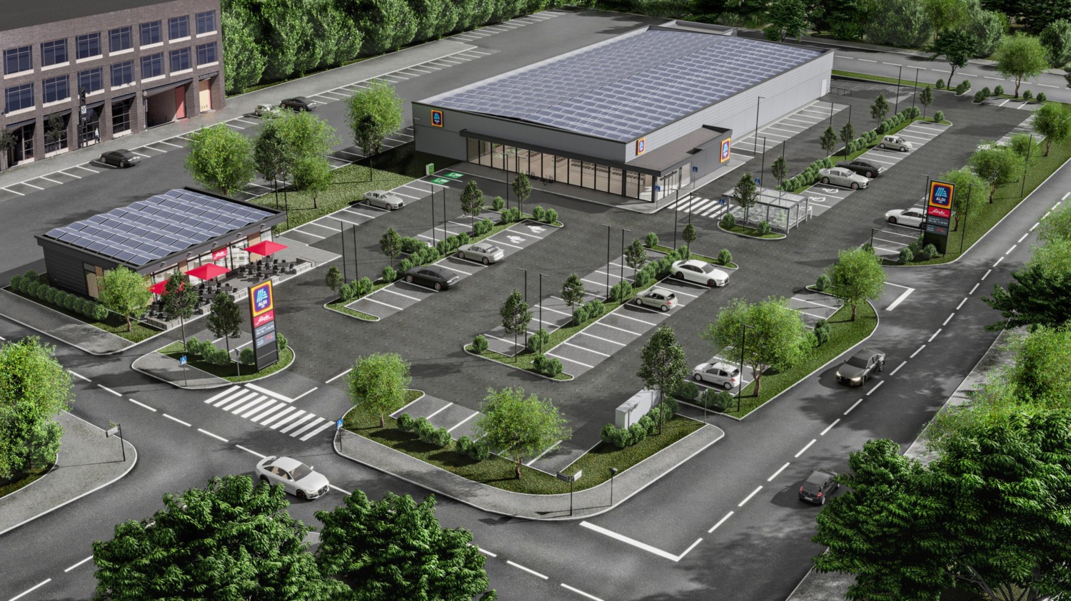 Geplant ist vor Ort außerdem die Installation von E-Ladestationen. ALDI SÜD fördert so die Elektro-Mobilität und bieten Kund:innen bereits auf über 550 Filialparkplätzen Ladestationen für E-Fahrzeuge. Dort können sie Grünstrom aus Fotovoltaikanlagen oder aus Wasserkraft tanken.