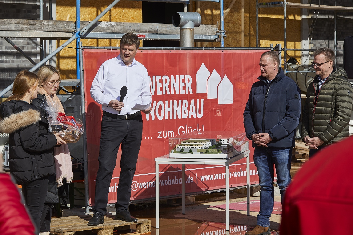 Etwa fünf Jahre, nachdem die ersten Ideen dazu entwickelt worden waren, konnten im Herbst 2021 die Bauarbeiten zum neuen Nahversorgungszentrum offiziell beginnen. Die neue Ortsmitte ist ein Gemeinschaftsprojekt: Die Werner Wohnbau GmbH und ALDI SÜD hatten sich immer wieder eng mit der Gemeindeverwaltung, dem Gemeinderat, der Bürgerschaft sowie mit den örtlichen Vereinen abgestimmt.