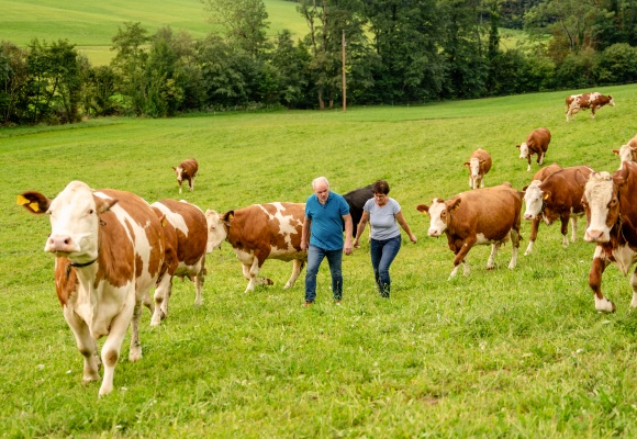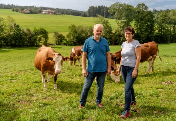 Im Salzburger Seenland, in Östereich, liegt der Oberwieser-Hof von Familie Lechner. Auf dem Naturland-Hof gibt es Milchkühe und Grünland-Flächen, aber auch Streuobstwiesen für Insekten und Vögel. Mit der Bio-Landwirtschaft will die Familie Lechner einen intakten und zukunftsfähigen Lebensraum bewahren. Die Milch des Oberwieser-Hofs kann an der Produktion unseres NUR NUR NATUR Reibekäses beteiligt sein.