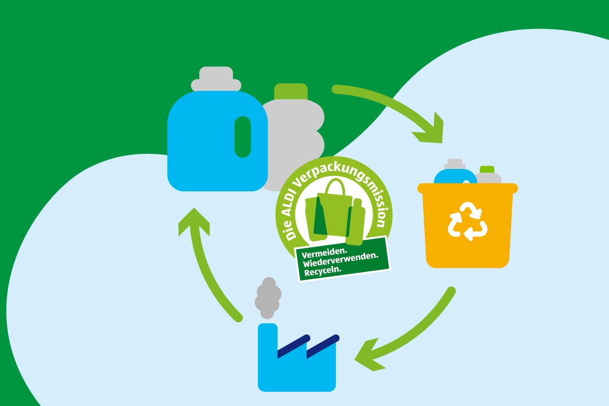 … dass ALDI SÜD auch seine Produktverpackungen nachhaltiger macht? Erfahre mehr darüber, wie wir Verpackungen einsparen, wo wir Recyclingmaterial einsetzen