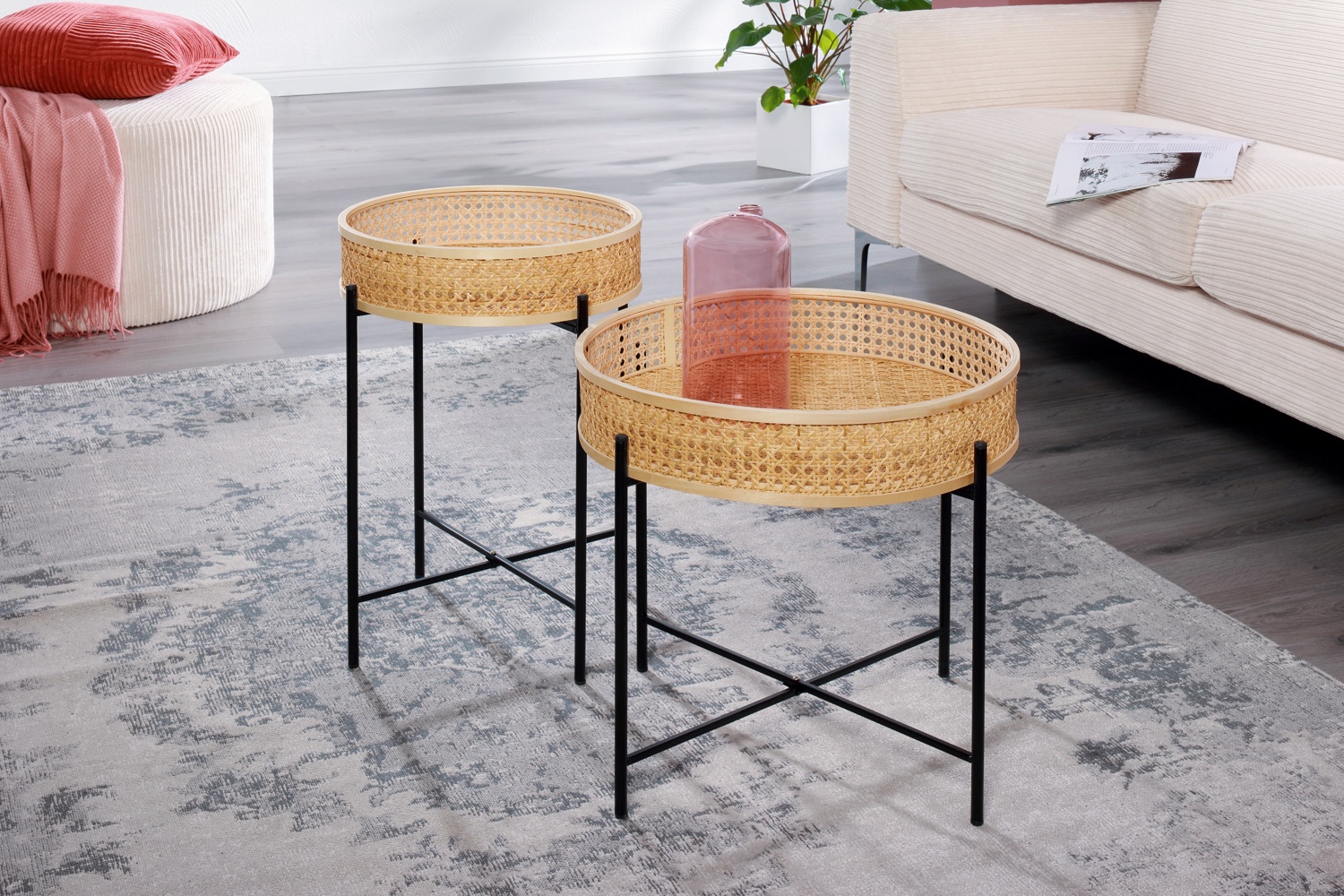 Echte Statement-Pieces sind die LIVING AT HOME Möbel mit Kaffeehausgeflecht. Das achteckige Muster zierte um 1900 Stühle in Wiener Kaffeehäusern und ist aktuell angesagter denn je. Neben Beistelltischen mit abnehmbaren Geflechtaufsatz (2er-Set für 49,99 Euro) bietet ALDI SÜD eine Kommode (40 x 30 x 71 cm, 79,99 Euro) und ein Lowboard (120 x 40 x 47 cm, 99,99 Euro) mit Schubladen in Flechtoptik an. Beide Möbelstücke verfügen über Massivholzbeine mit Metall-Randverzierung, die sich in der Höhe verstellen lassen. Dank des hellen Holzes passen die unkonventionellen Möbelstücke ideal zu vielen Wohntrends wie dem Bohème- oder dem Skandinavischen Stil.
