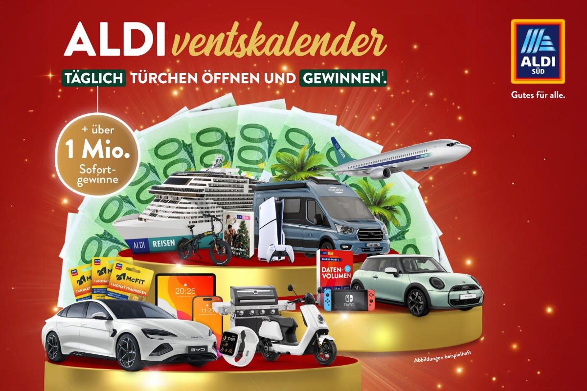 Der Einkauf bei ALDI SÜD lohnt sich im Dezember noch mehr: Ab dem 01.12.2024 öffnet sich täglich ein digitales Türchen für die Tagespreise auf der ALDIventskalender-Seite, außerdem erhält jede:r Kund:in beim Einkauf in den ALDI SÜD Filialen ein Glückslos für den ALDIventskalender gratis. Dahinter verbergen sich zahlreiche Sofortgewinne sowie die Teilnahme an der Hauptverlosung des großen ALDIventskalenders. Einfach Glückscode scannen und unter www.aldiventskalender.de/sued eingeben. Nach Ausfüllen des Online-Formulars sind die Kund:innen für die jeweilige Tagesverlosung und zusätzlich für die Hauptverlosung registriert und können tolle Preise gewinnen: vom iPhone 16 Pro über E-Bikes, Tablets und Spielekonsolen bis hin zu Reisen, TV-Geräten oder Autos.