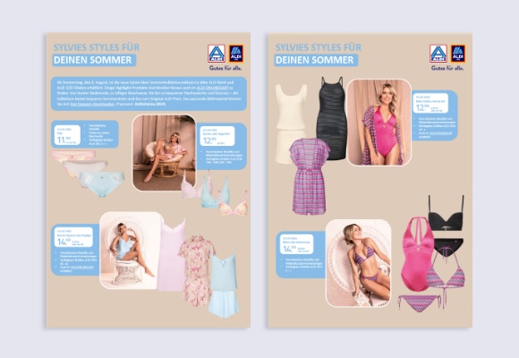 Bunte Bademode, luftige Beachwear, und bequeme Nachtwäsche – das erwartet ALDI Kund:innen in der neuen Sommerkollektion von Sylvie Meis. Ab Donnerstag, den 8. August, gibt es die Kollektion „Sommerstyles“ deutschlandweit in allen ALDI Filialen – wie gewohnt zum Original ALDI Preis.