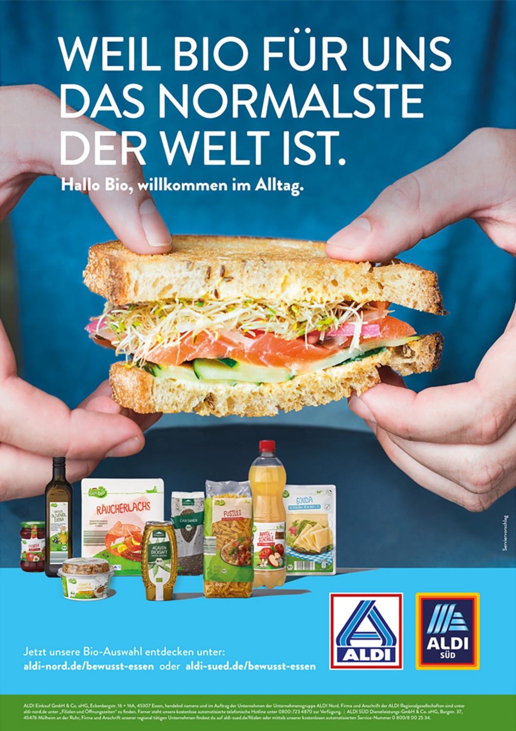 Mit der Kampagne stellen die Discounter heraus, dass ein umfangreiches Bio- Sortiment, ein großes Angebot an veganen Produkten und eine große Auswahl an frischem Obst und Gemüse bei ALDI zum Standard gehören. So machen mehr als 350 Bio-Artikel über das Jahr verteilt bei ALDI SÜD sowie 305 Bio-Produkte bei ALDI Nord den kompletten Wocheneinkauf in Bio-Qualität möglich. Auch vegane Produkte sind längst fester Bestandteil des Sortiments. Bereits zum zweiten Mal in Folge nimmt ALDI in diesem Jahr am Veganuary teil. Für die Vielfalt und Verfügbarkeit veganer Produkte und die erstmalige Teilnahme am Veganuary im vergangenen Jahr erhielten ALDI Nord und ALDI SÜD Mitte 2020 von der Tierschutzorganisation PETA den „Vegan Food Award 2020“ als „Vegan freundlichster Supermarkt“.