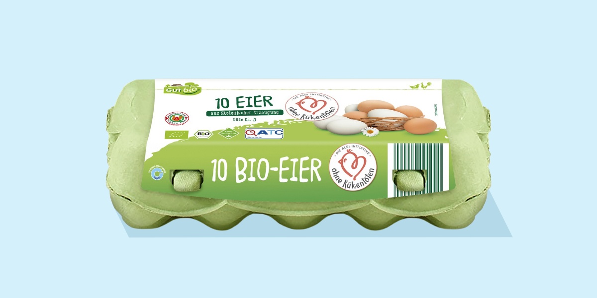 Aktuell bezieht der Discounter sämtliche Eier „ohne Kükentöten“ aus der sogenannten Bruderhahn-Aufzucht, bei der männliche Küken mitaufgezogen werden. Seit Ende 2020 können Kunden aus den Verkaufsgebieten Rheinberg und Kirchheim bereits Bio-Eier „ohne Kükentöten“ aus dieser Aufzucht kaufen. Zukünftig bietet ALDI SÜD Bio-Eier ausschließlich aus der Bruderhahn-Aufzucht an. Für die Umstellung der Eier aus Boden- und Freilandhaltung nutzt der Discounter zusätzlich weitere Maßnahmen: Mithilfe innovativer, technischer Verfahren lässt sich frühzeitig eine Geschlechtsbestimmung des Bruteis vornehmen, sodass männliche Küken erst gar nicht ausgebrütet werden.