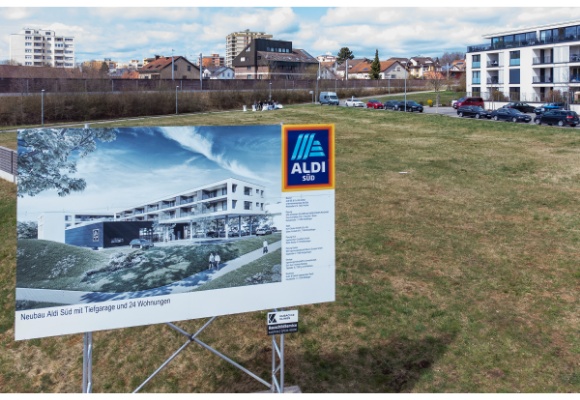 In Sindelfingen baut ALDI SÜD auf einem 3.400 Quadratmeter großen Grundstück eine Filiale mit Kinderspielplatz auf dem Dach, 24 Wohnungen sowie eine Tiefgarage. Die Fertigstellung ist Anfang 2024 geplant.