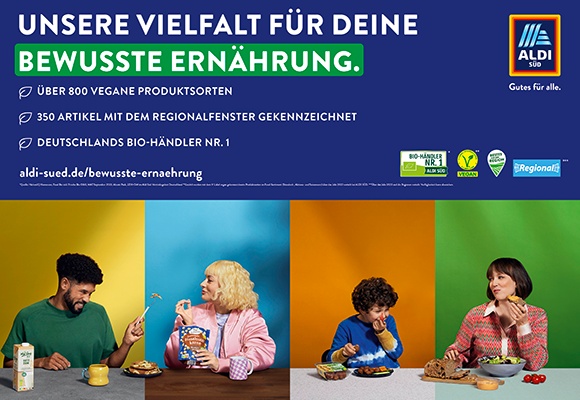 Egal ob vegetarisch, pflanzenbasiert, Bio oder regional: Eine bewusste Ernährung hat viele Facetten und muss nicht teuer sein. Mit dieser Botschaft gehen ALDI Nord und ALDI SÜD zu Beginn des Jahres mit ihren neuen Kampagnen an den Start und zeigen, dass eine bewusste und vielfältige Ernährung mit ALDI für alle leistbar und einfach ist.