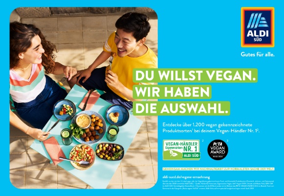 Um seinen Kund:innen eine pflanzenbasierte Ernährung näher zu bringen, feiert der Discounter am 1. November reichweitenstark den Weltvegantag. Auf verschiedenen Kanälen, wie der Website, auf Social Media, am Point of Sale und im Handzettel, wird die pflanzliche Vielfalt von ALDI SÜD gezeigt. Erst kürzlich hat der Discounter anlässlich der Veröffentlichung seines Ernährungsreports das Verhältnis pflanzenbasierter zu tierbasierten Produkten in seinem Sortiment errechnet. Aktuell liegt der Anteil pflanzenbasierter Produkte im Food-Sortiment bereits bei 60 Prozent3. Im Rahmen des ALDI SÜD Ernährungswechsel hat sich der Discounter zum Ziel gesetzt, eine nachhaltigere und bewusste Ernährungsweise für alle leistbar zu machen und dabei auch das Angebot an pflanzlichen Produkten stetig auszubauen.