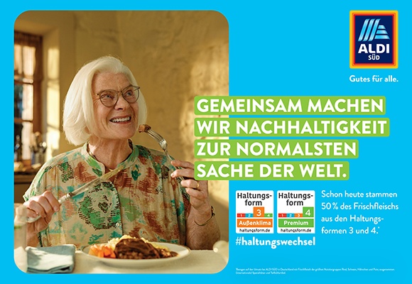 ,,Als Grundversorger steht ALDI SÜD für ,Gutes für alle.‘ Das bedeutet auch Gutes für die Natur und unsere Umwelt. Deswegen arbeiten wir tagtäglich daran, unsere Produkte noch nachhaltiger zu machen. Ein gutes Beispiel dafür ist unser Haltungswechsel, mit dem wir schon 2021 verbindliche Ziele für mehr Tierwohl definiert haben‘‘, sagt Christian Göbel, stellvertretender Geschäftsführer Marketing & Communication bei ALDI SÜD. ,,In unserer neuen Kampagne stellen wir unser Engagement für Umwelt und Tierwohl in den Vordergrund und zeigen: Zusammen mit unseren Kund:innen machen wir Nachhaltigkeit zur normalsten Sache der Welt. Wir entwickeln uns dabei stets weiter und werden unseren Weg als verantwortungsbewusstes Unternehmen auch in Zukunft konsequent weitergehen‘‘.