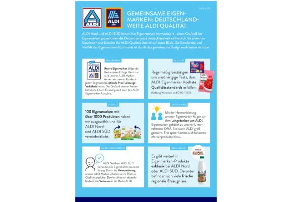 - Regelmäßige Top-Ergebnisse bei ÖKO-TEST und Stiftung Warentest zeigen hohe Qualität der ALDI Marken
