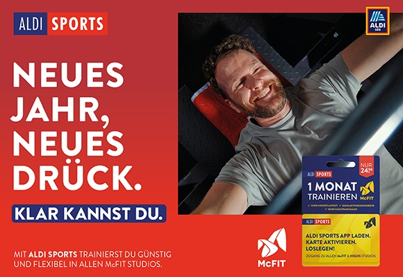 Sport treiben, sich bewusst ernähren und Geld sparen: Die kostenlose App von ALDI SPORTS macht all das möglich. Mit einer neuen Kampagne ermutigt ALDI SPORTS Kund:innen unter dem Motto „Klar kannst du” mit guten Vorsätzen ins neue Jahr zu starten.