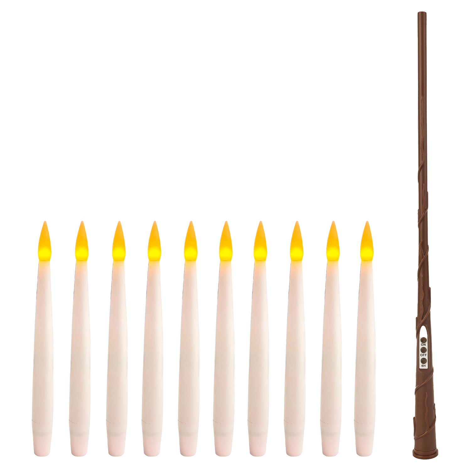 • Set mit 10 LED Kerzen zum individuellen Aufhängen und einem Zauberstab als Fernbedienung.