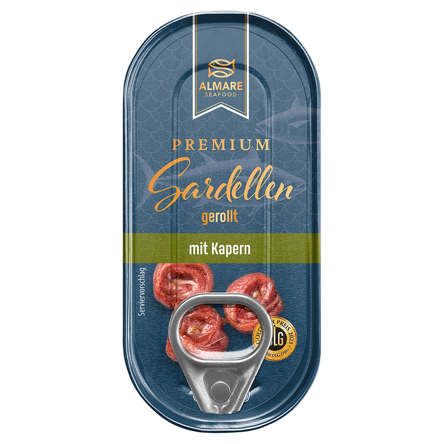 ALMARE SEAFOOD Sardellenfilets in der Dose 50 g, Gerollt mit Kapern