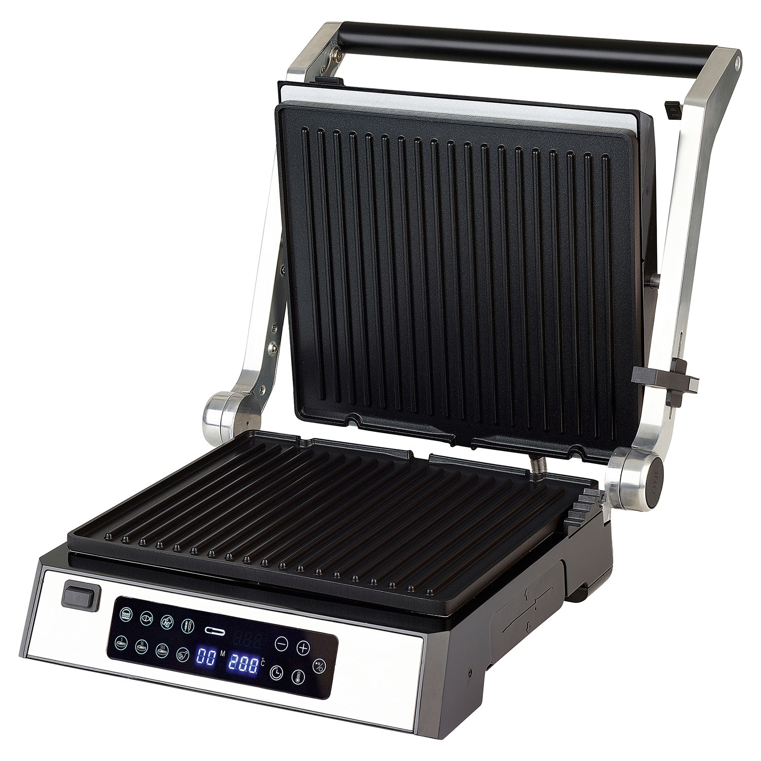 - 8 voreingestellte Programme: Fleisch - rare, Fleisch - medium; Fleisch - done, Fisch, Burger, Geflügel, Gemüse, Grillspieße/Kebab