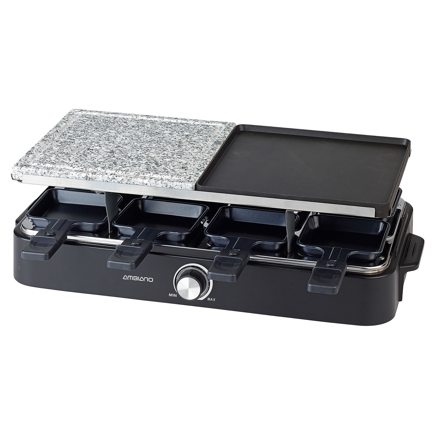 - Mit geteilter Grillplatte: halbe Steinplatte mit Fettauffangrille