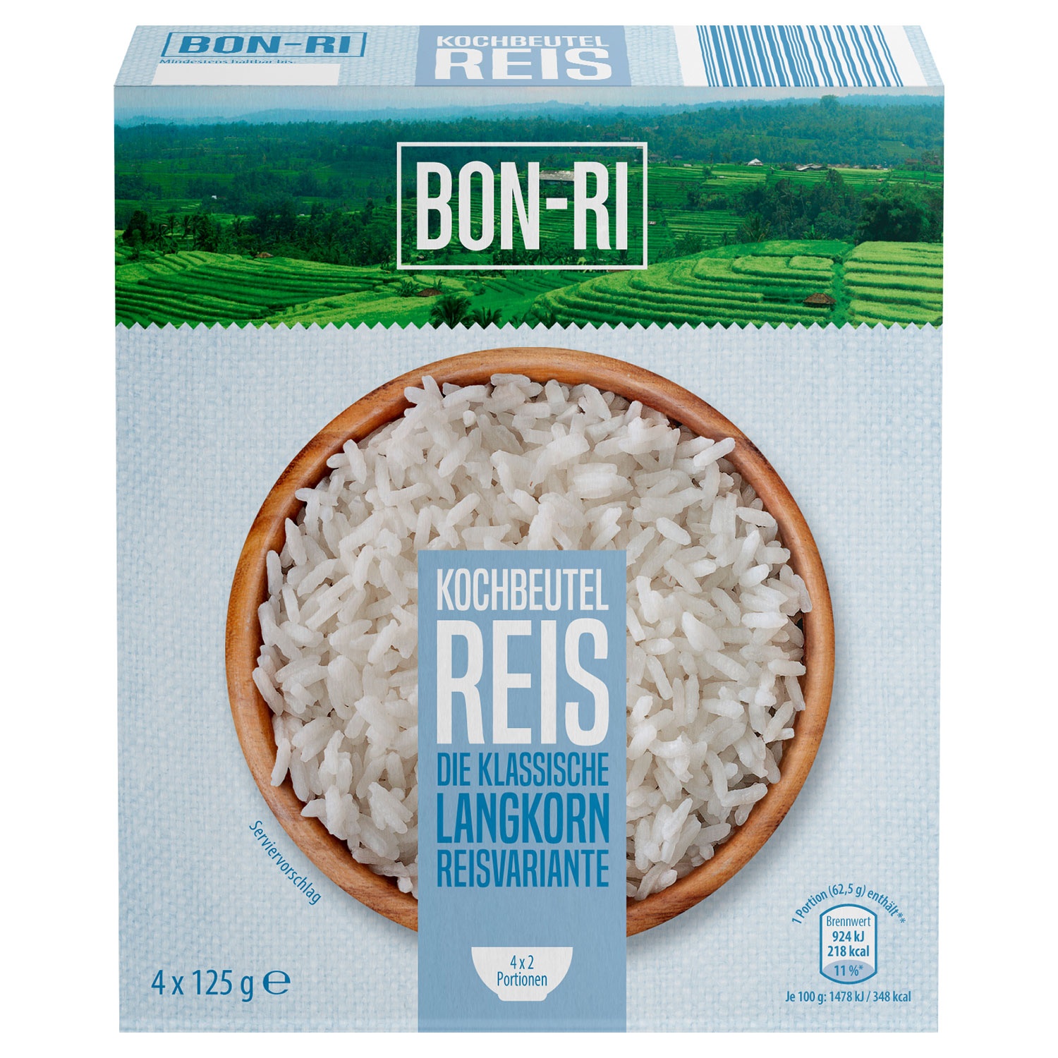 1 Beutel entspricht 2 Portionen (125 g Reis)