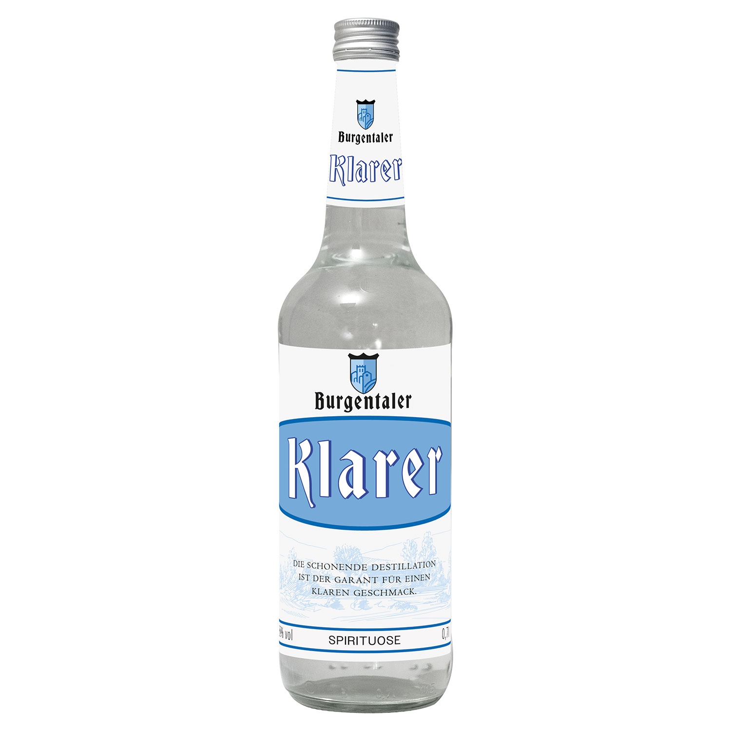 - Unser Burgentaler Klarer besticht durch die schonende Destillation mit seinem milden und klaren Geschmack. Am Besten pur & eisgekühlt oder als Mixgetränk genießen