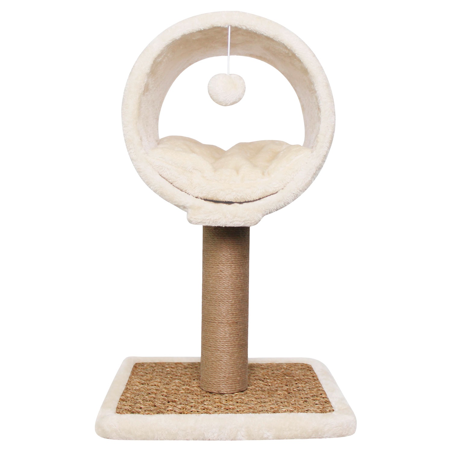 Dieser bezaubernde Kratzbaum aus weichem Plüsch und Seegras ist der ideale Ort zum Spielen und Entspannen für Ihre Katze