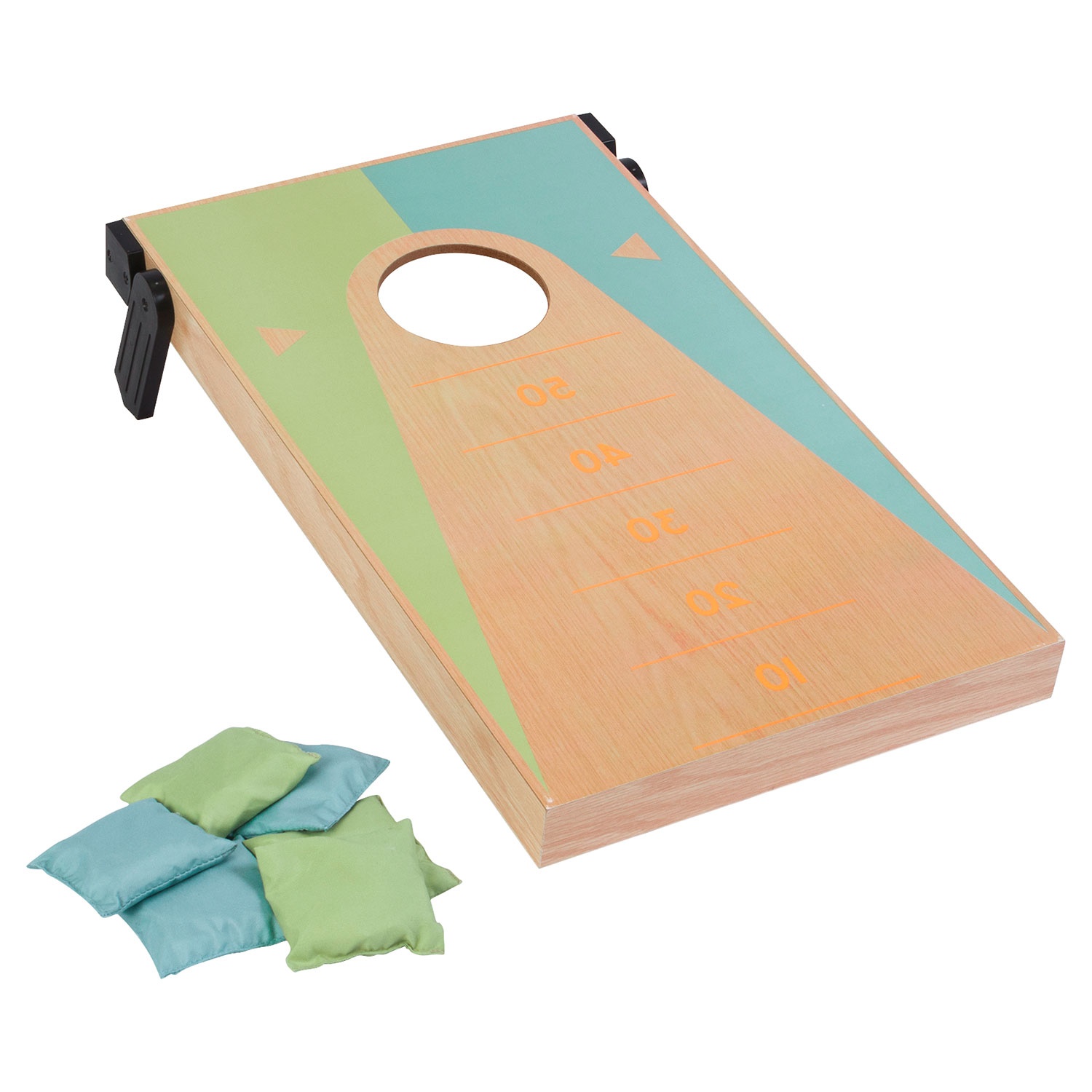 • Enthält ein wendbares Spielbrett und 10 Wurfsäcke