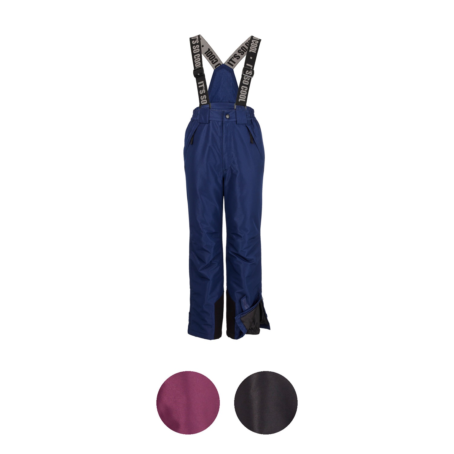 - Entspannte Passform, lange Skihosen für Kinder, mit Latz und verstellbaren Trägern, mit elastischem Bund mit Gürtelschlaufen und Frontknopf, Seitentaschen mit Reißverschluss