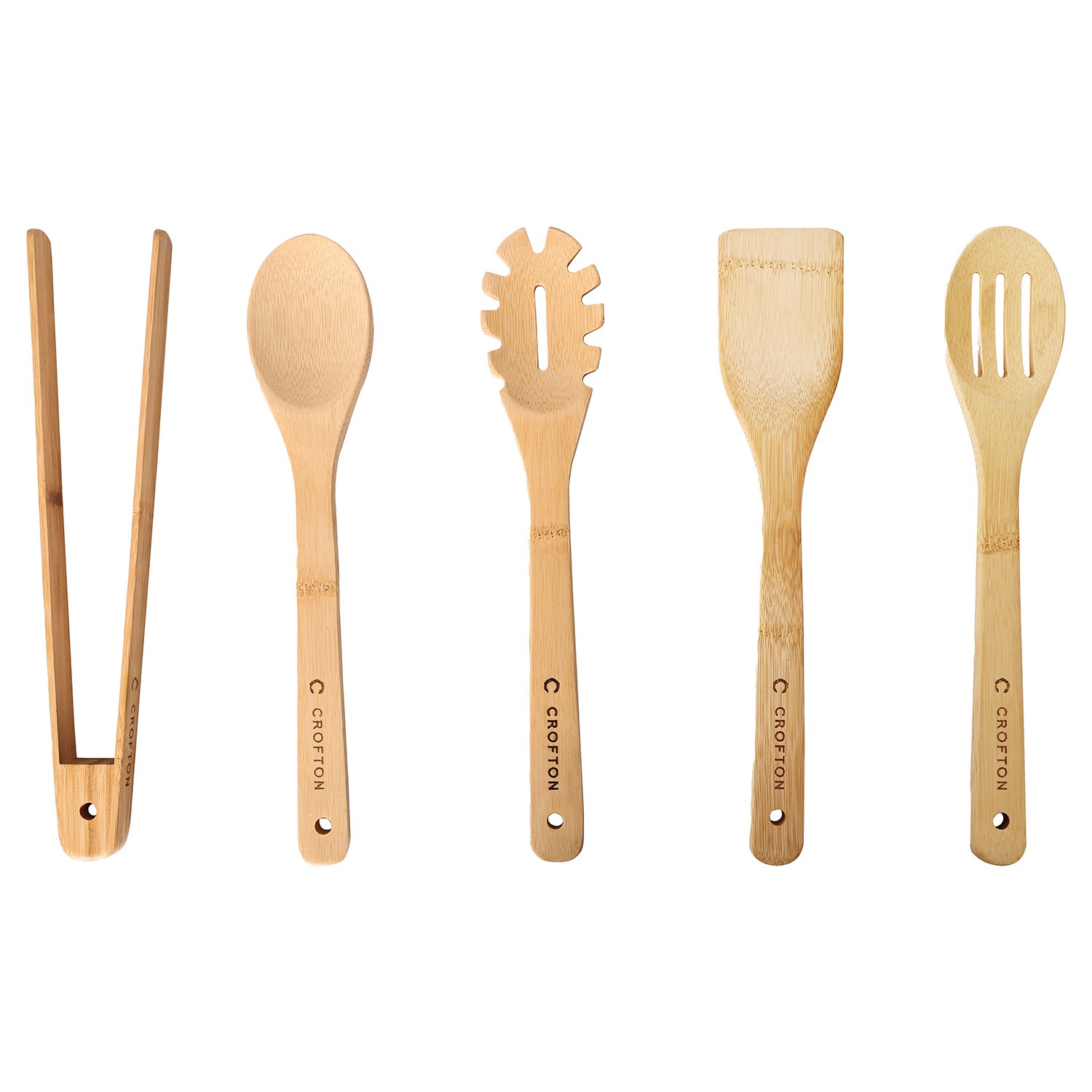 Inhalt: Schaumkelle, Löffel, Wender, Spaghettilöffel und Zange