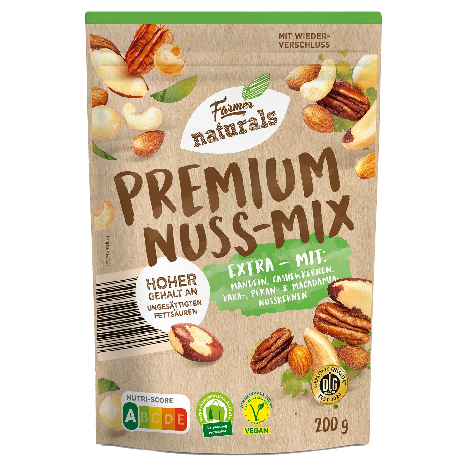 Extra mit: Mandeln, Cashewkernen, Para-, Pekan- und Macadamia-Nusskernen