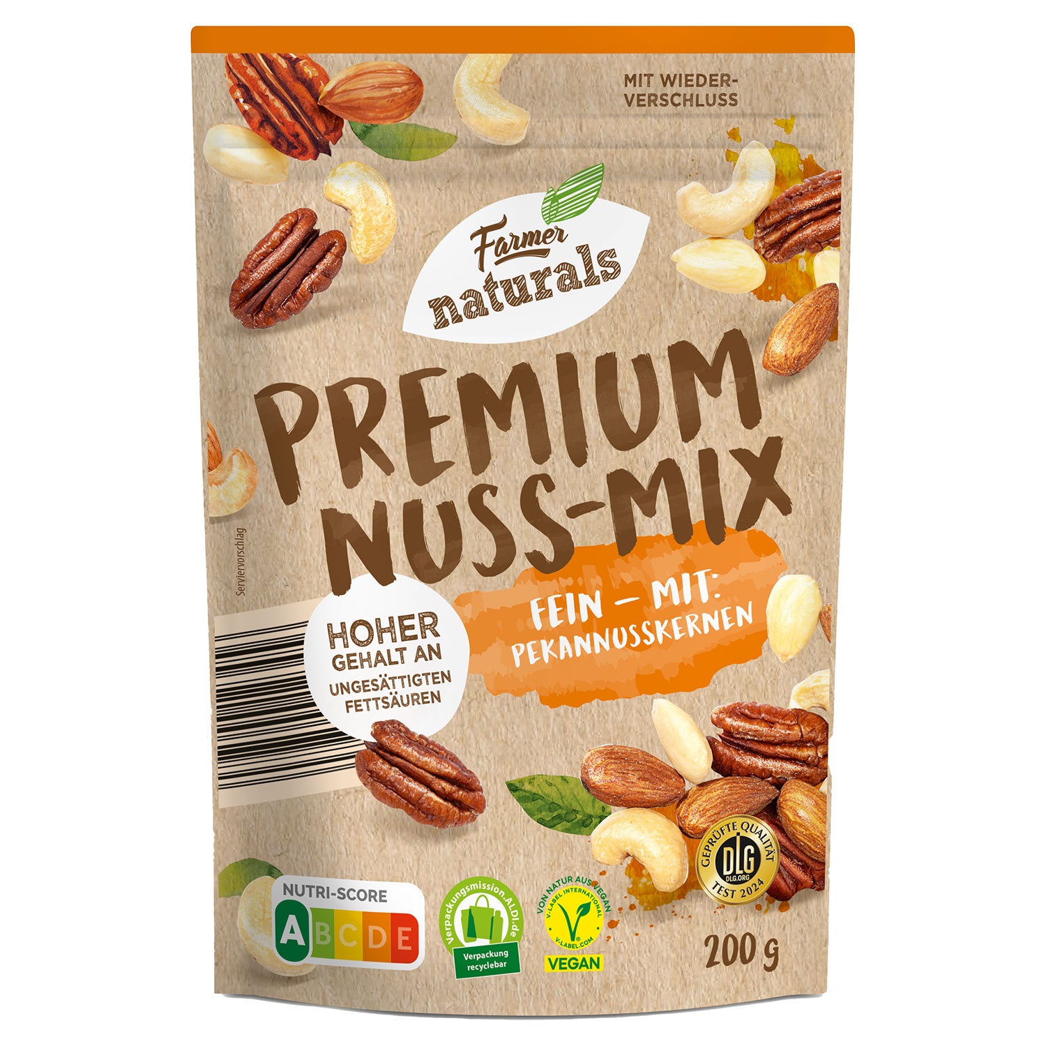 Extra mit: Mandeln, Cashewkernen, Para-, Pekan- und Macadamia-Nusskernen