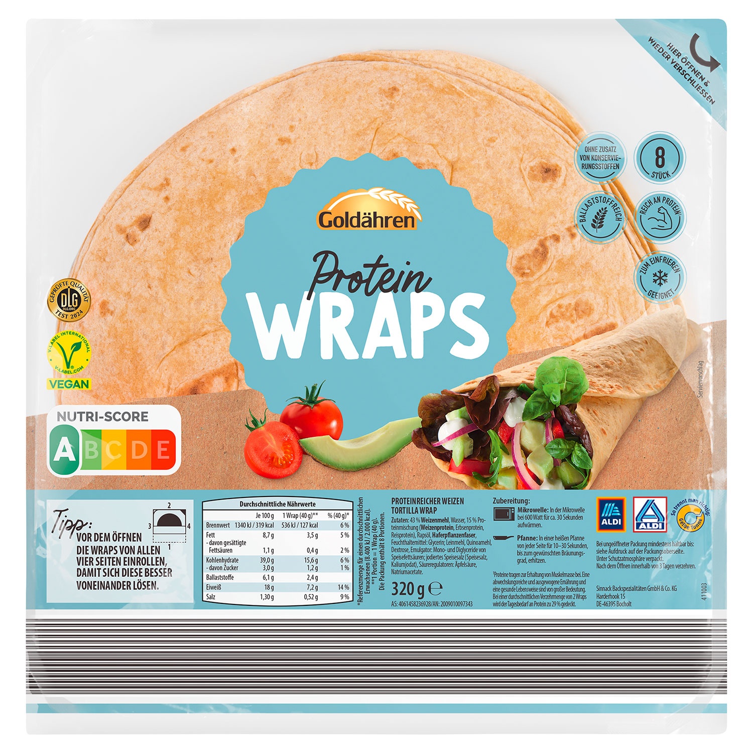 30 % weniger Kohlenhydrate als Weizentortillas