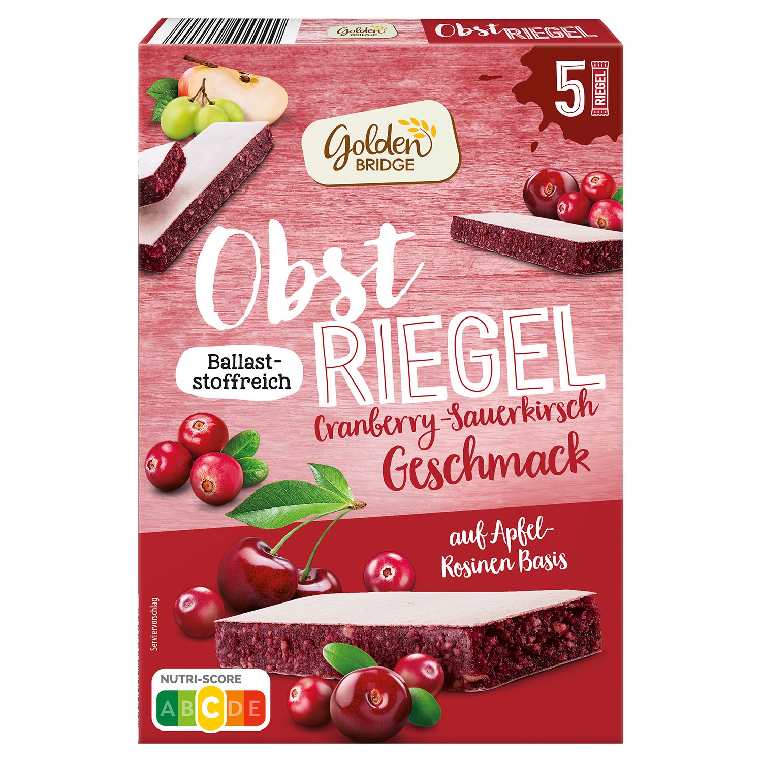 GOLDEN BRIDGE Obstriegel 5 x 30 g, Cranberry-Kirsch