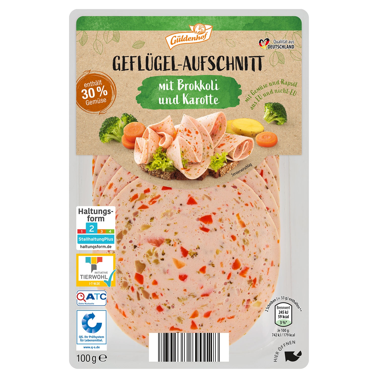 GÜLDENHOF Geflügel-Aufschnitt mit 30 % Gemüse 100 g, Brokkoli und Karotte