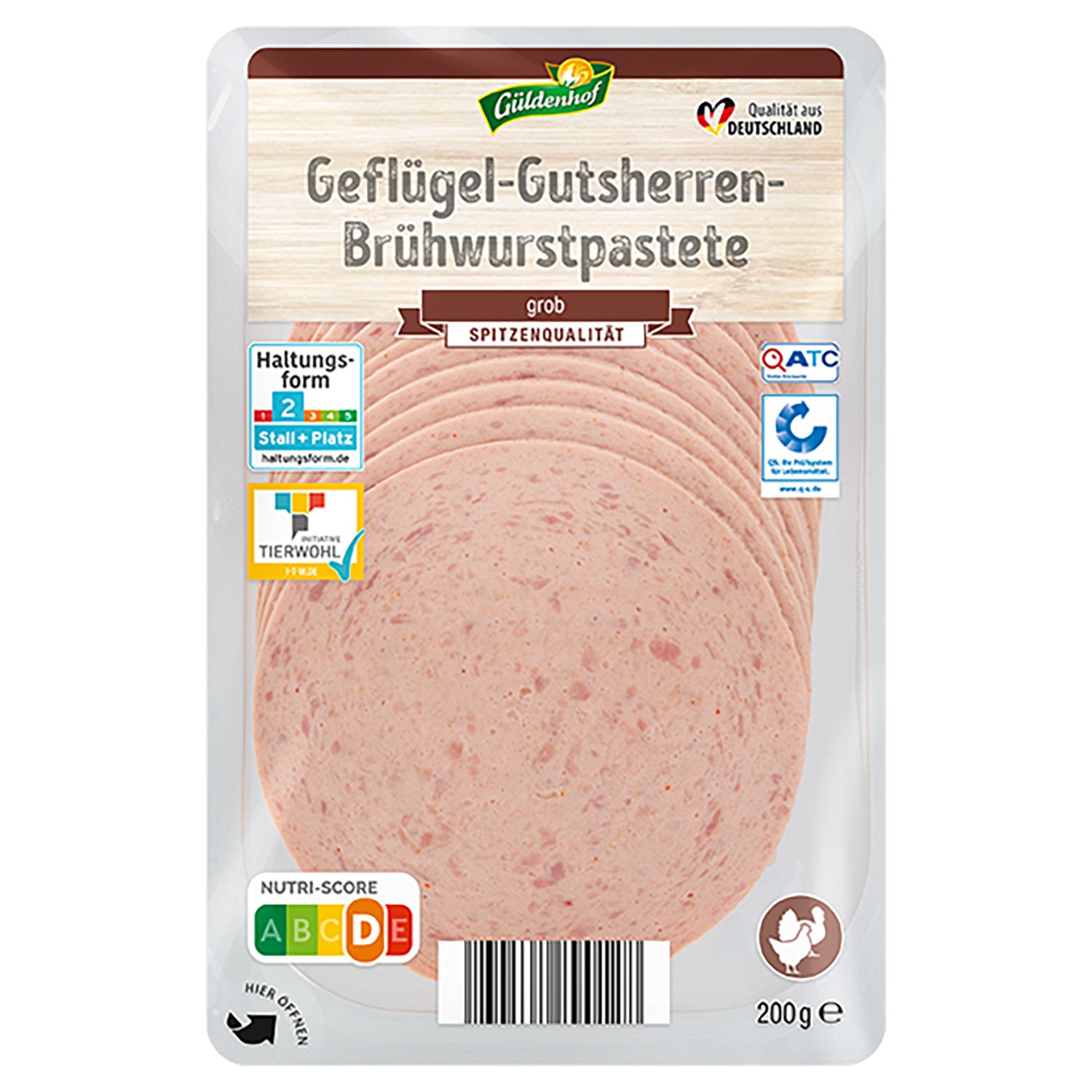 GÜLDENHOF Geflügel-Frischwurst-Aufschnitt 200 g, Gutsherrenpute