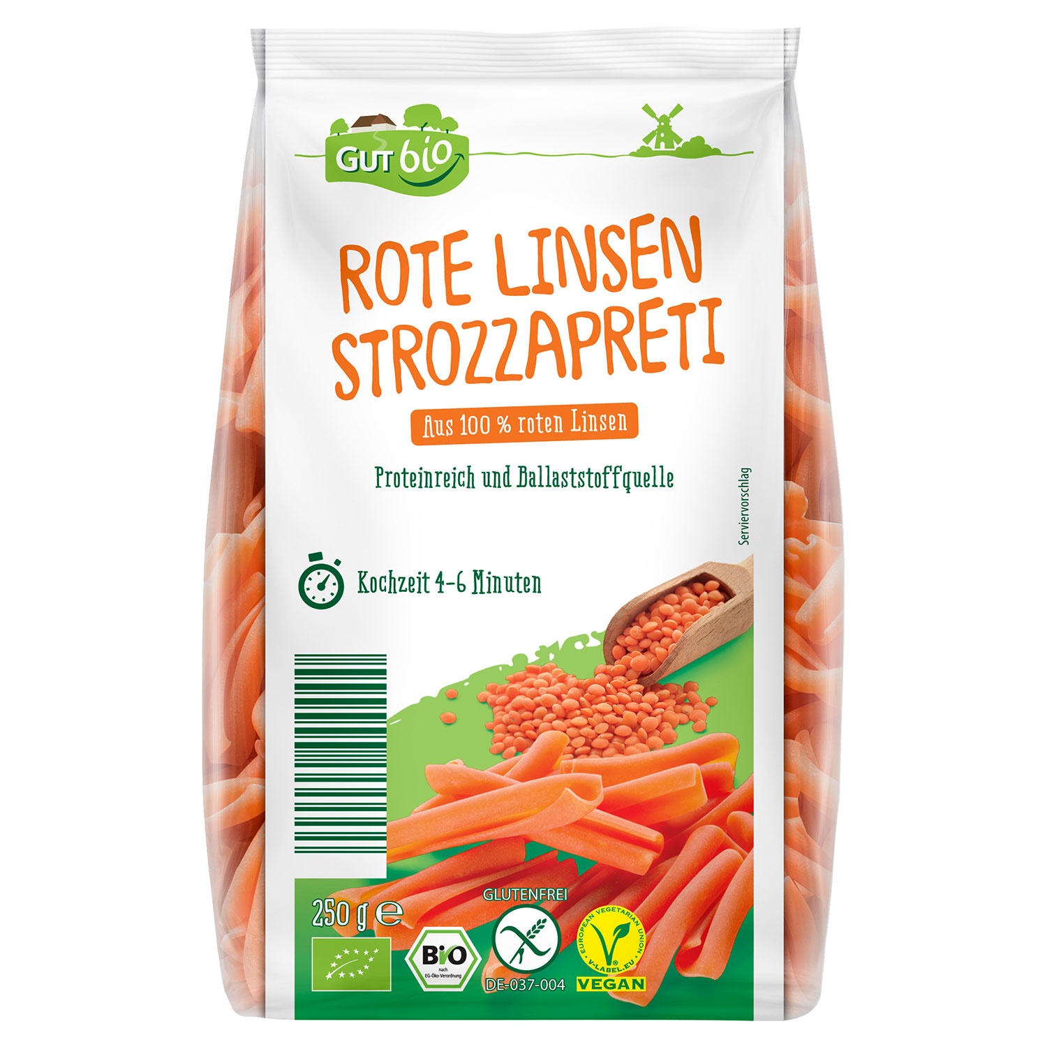 GUT BIO Bio-Gemüsepasta 250 g, Rote Linsen Strozzapreti
