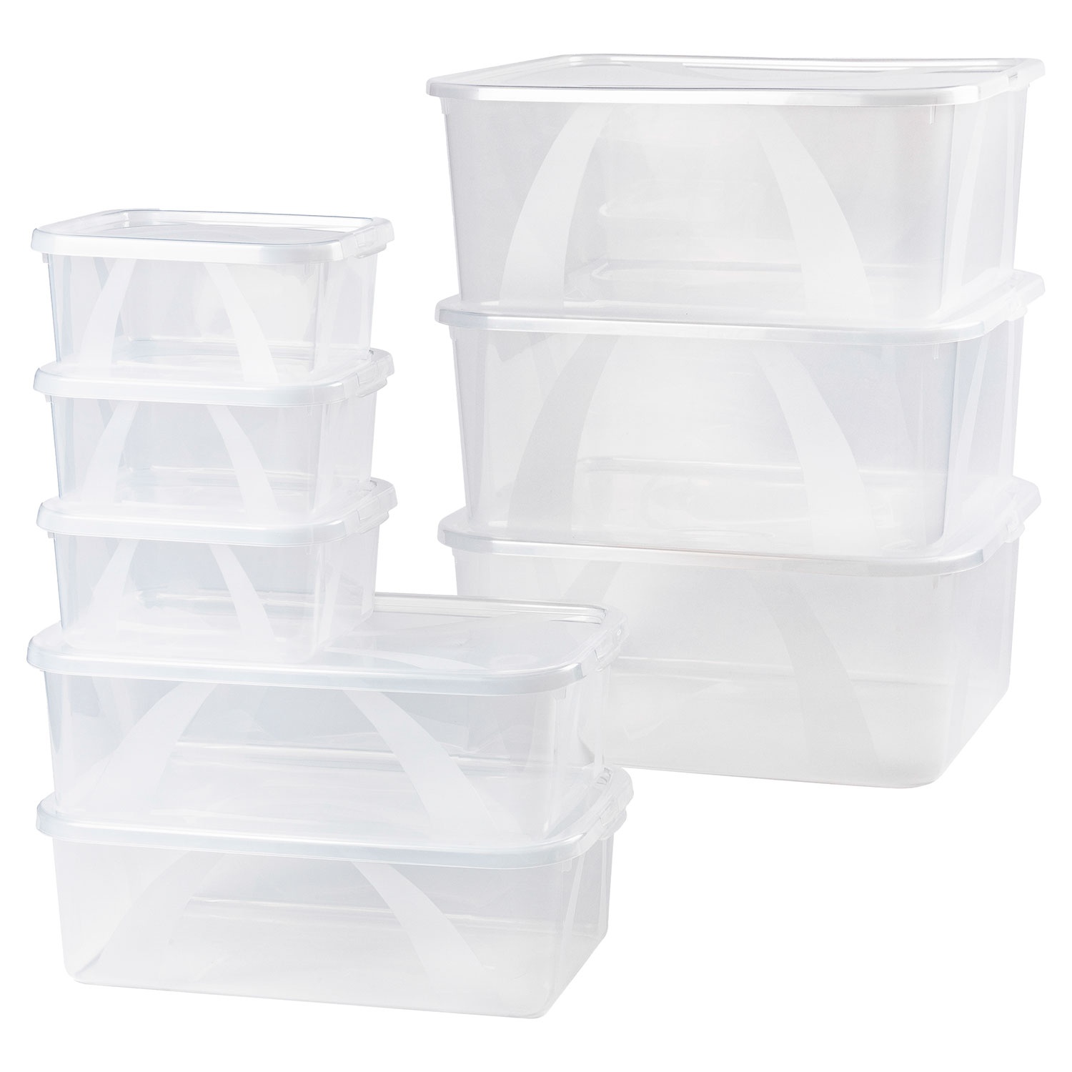 - Bestehend aus: 3 x große Klarsichtboxen mit Deckel, 2 x mittelgroße Klarsichtboxen mit Deckel, 3 x kleine Klarsichtboxen mit Deckel
