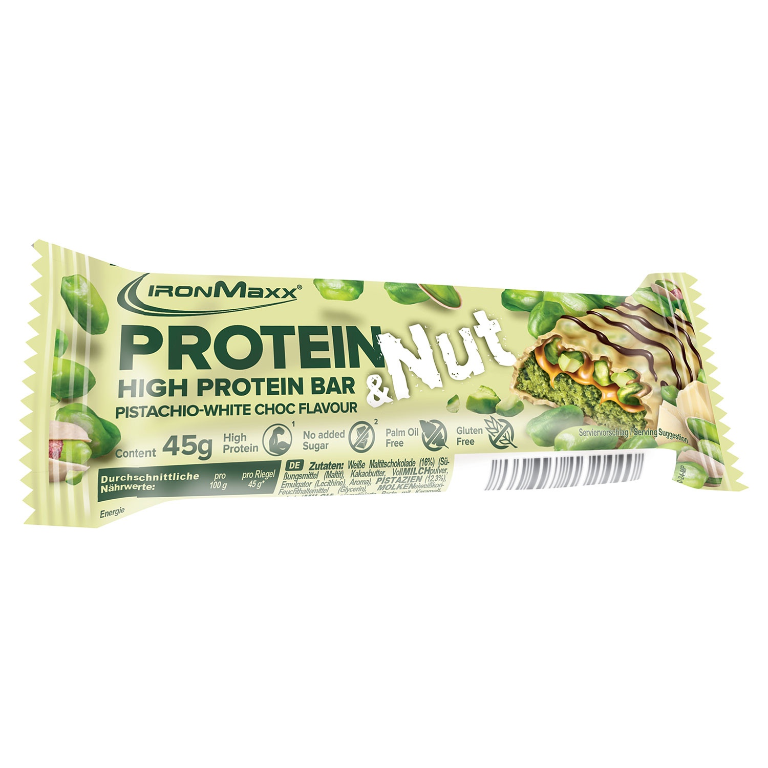 IRONMAXX Protein Nuts Bar 45 g, Pistachio White Chocolate