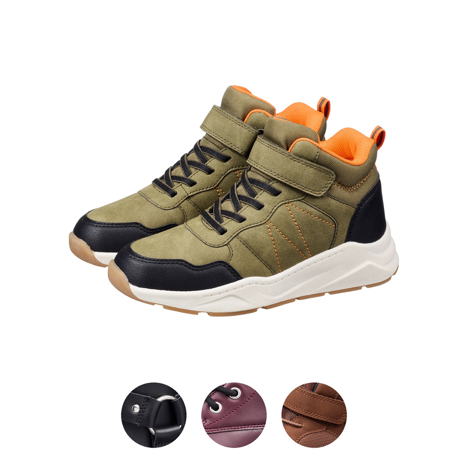 - Material: Obermaterial aus wasserbasiertem PU/Textil, Innenfutter aus Textil, Innensohle aus EVA mit Textilüberzug, TPR Außensohle
