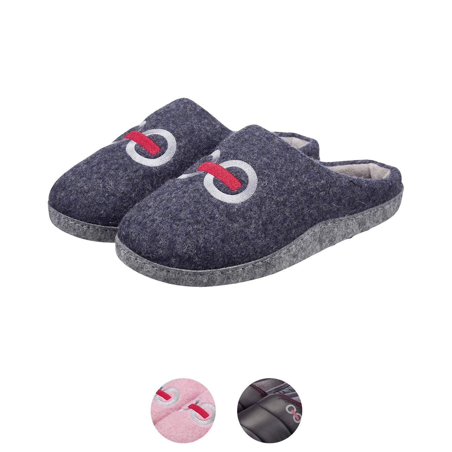 - Laufsohle: Vorgeformte Synthetikfilz-Laufsohle mit Anti-Rutsch-Punkten und Anti-Rutsch-Logo-Aufdruck