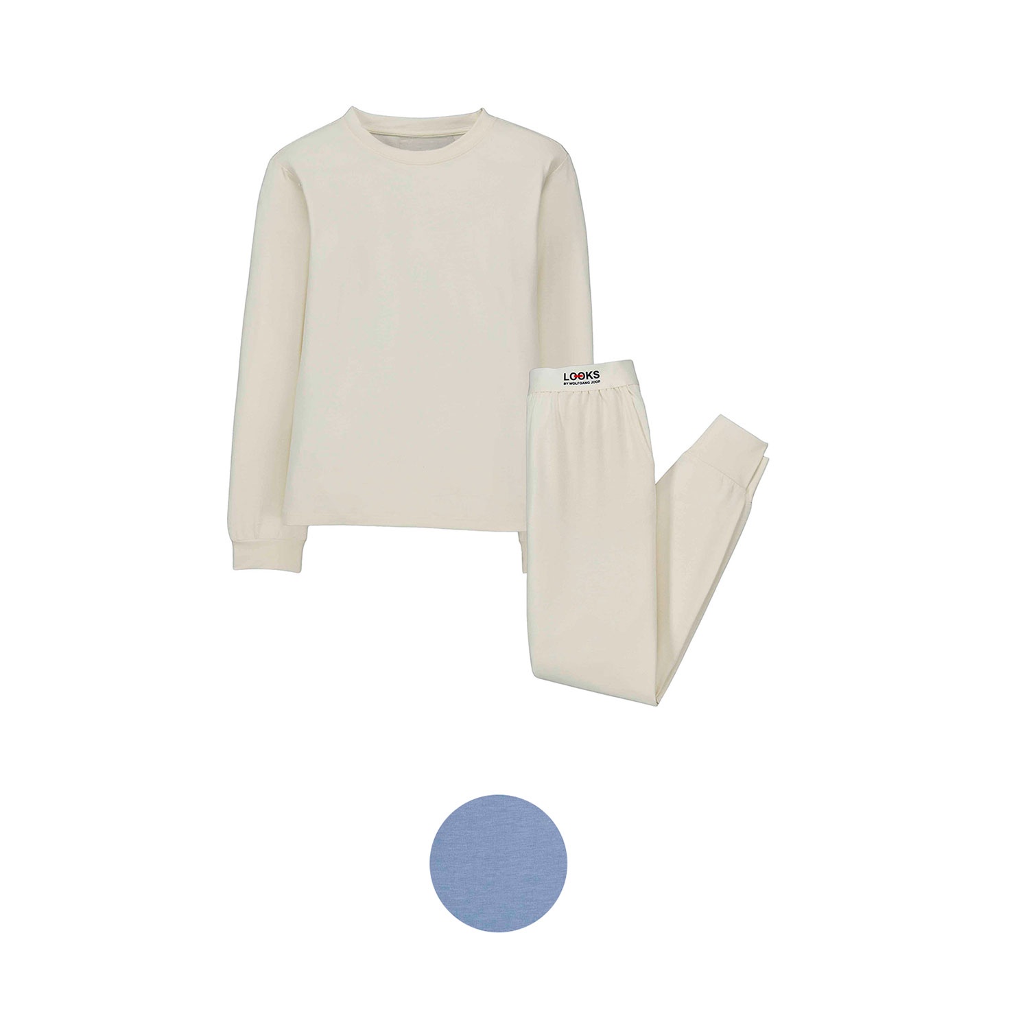 - Oberteil mit Rundhalsausschnitt, langen Ärmeln und Shell-Bündchen. Unterteil mit Muschelbündchen, Seitentaschen und markengeschütztem Gummibund