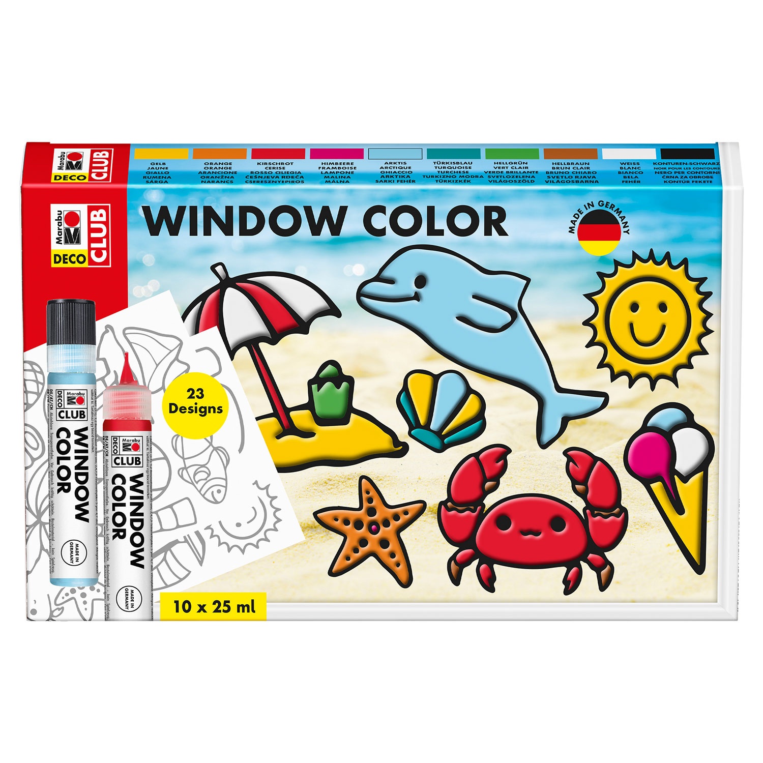 Die hochglänzende, lichtechte, wasserbasierte Farbe kann direkt aus der Flasche aufgetragen werden und eignet sich für Glas, Spiegel, Porzellan und Fliesen. Die Window Colour Bilder lassen sich leicht und rückstandslos entfernen.