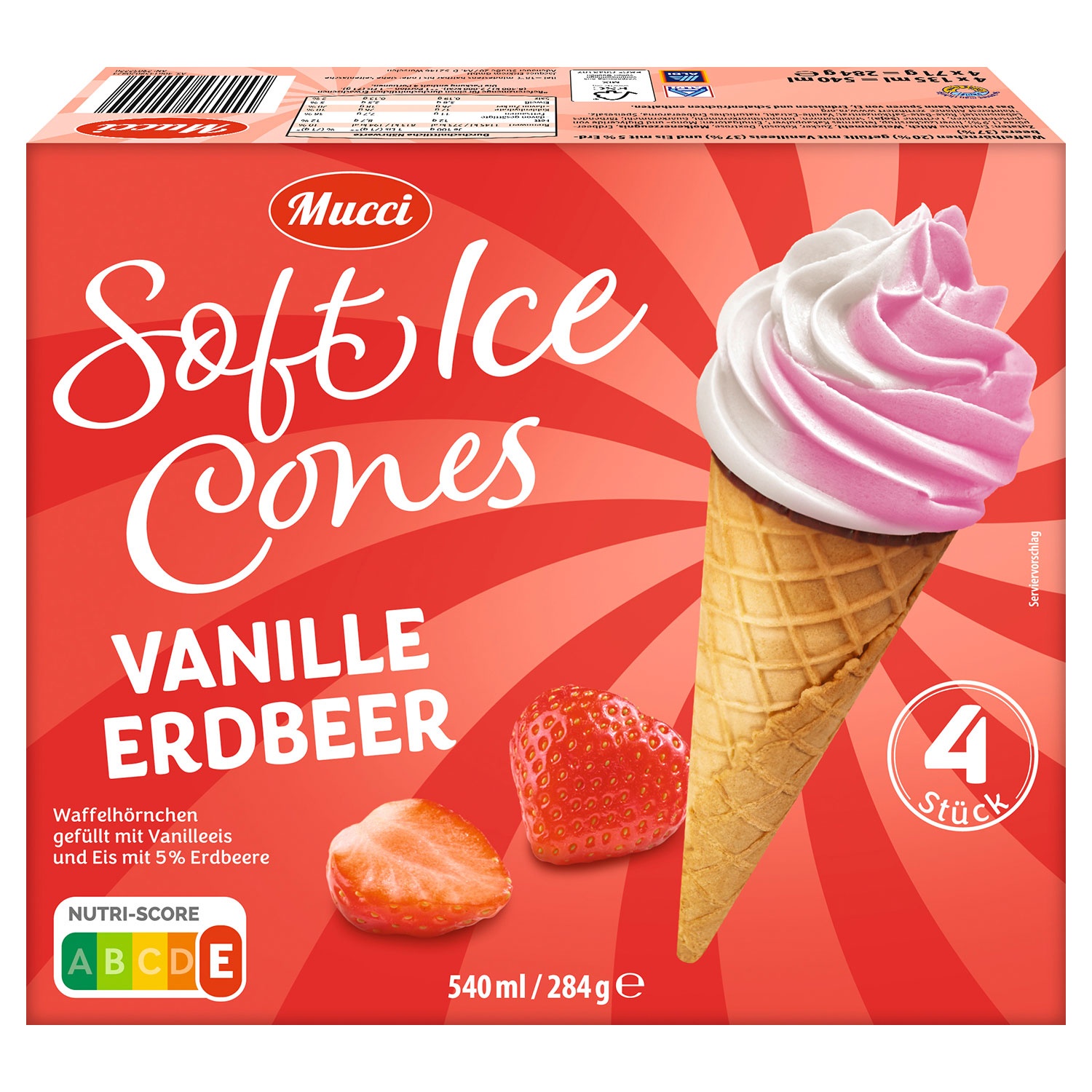 MUCCI Soft Ice Cones 540 ml, Vanille-Erdbeere