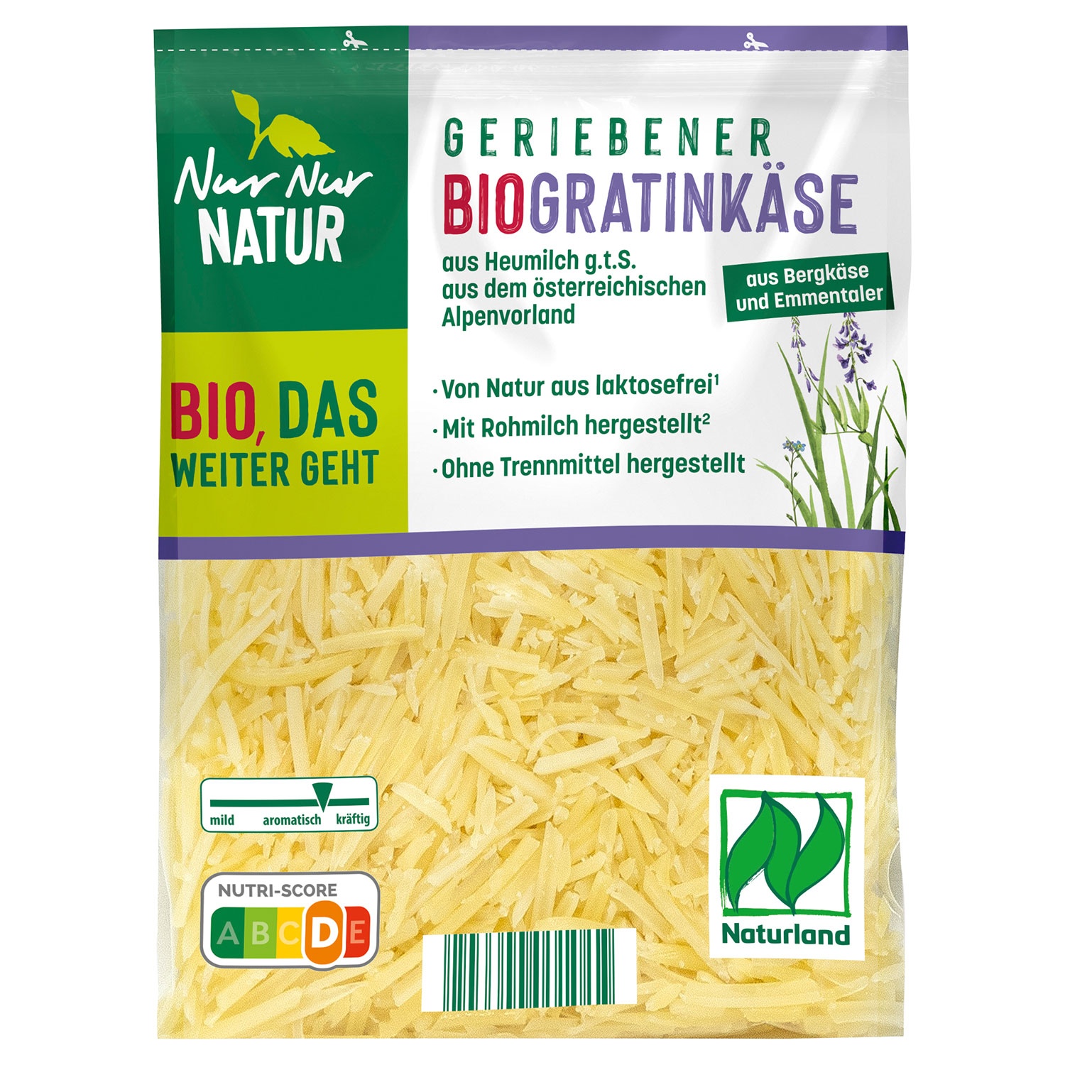 Erfahre hier mehr über unseren NUR NUR NATUR Bio-Emmentaler gerieben und die Herkunft ausgewählter Naturland-zertifizierter Produkte.